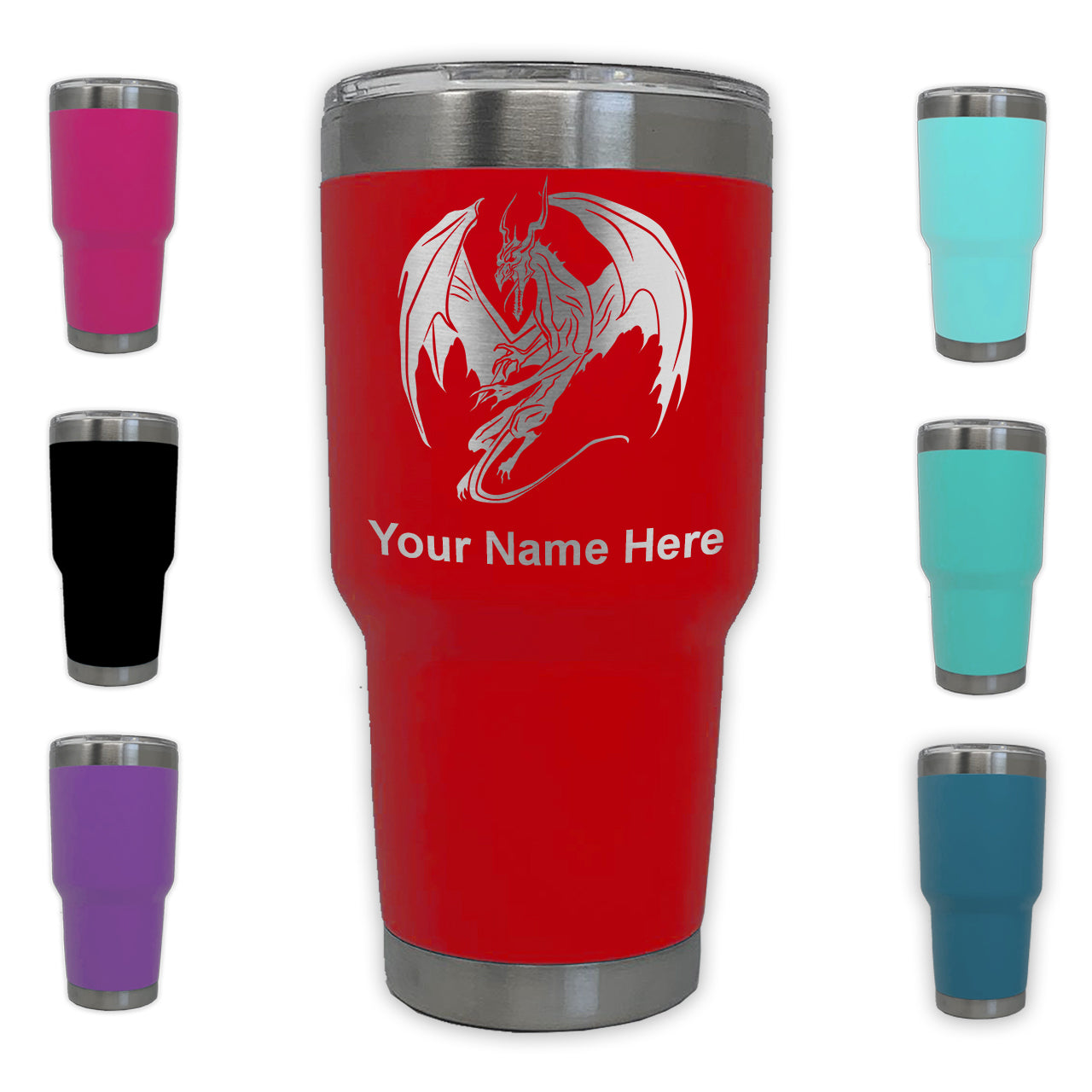 LaserGram 30oz Tumbler Mug, Dragon, Personalized Engraving Included
