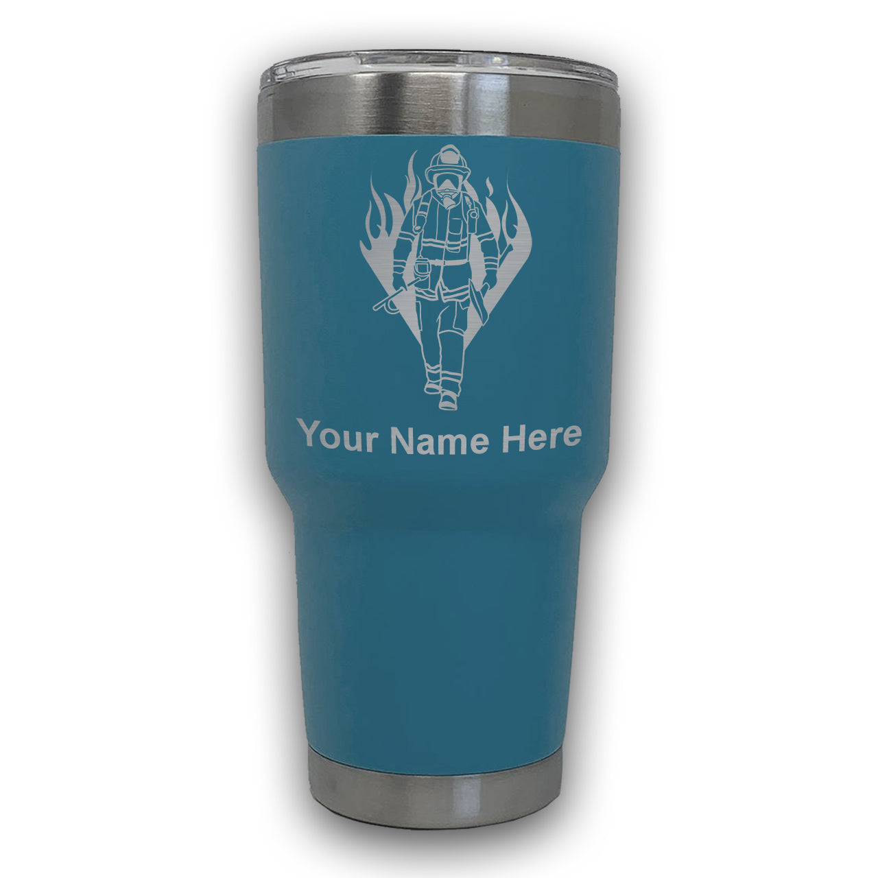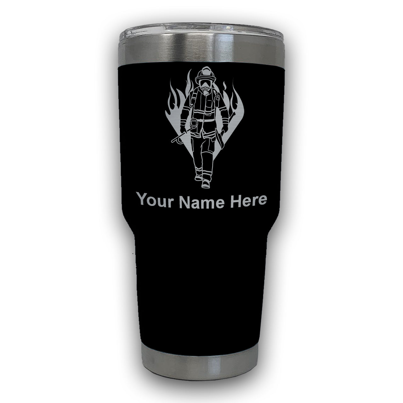 LaserGram 30oz Tumbler Mug, Fireman, Personalized Engraving Included
