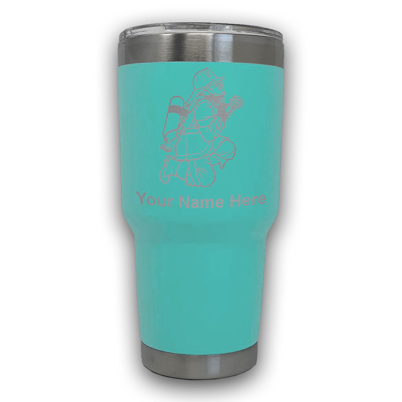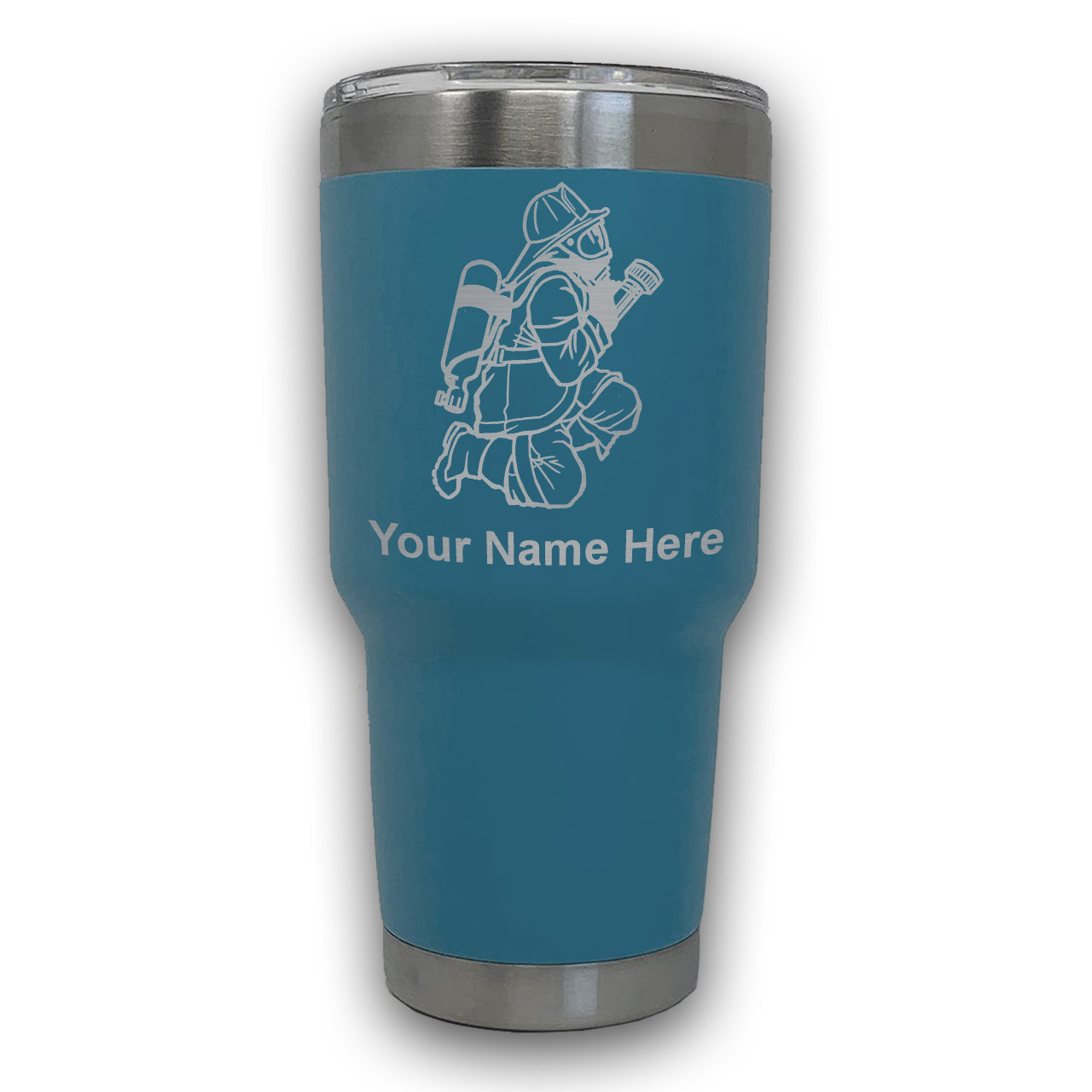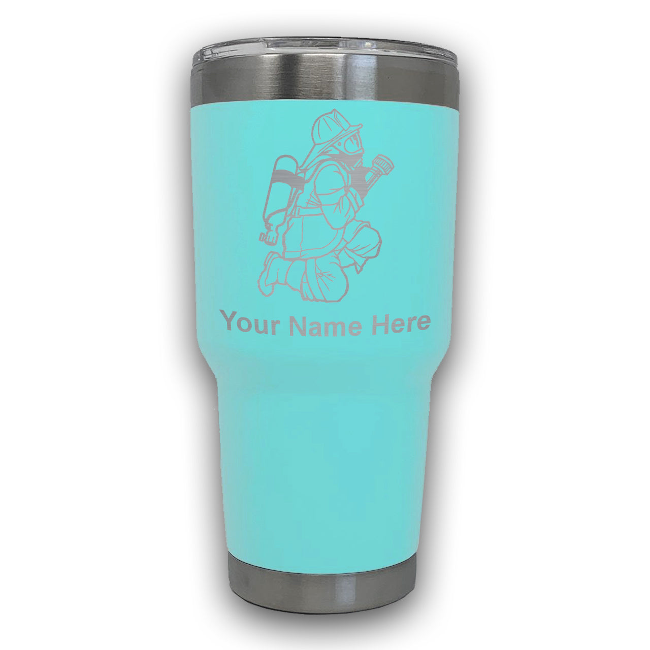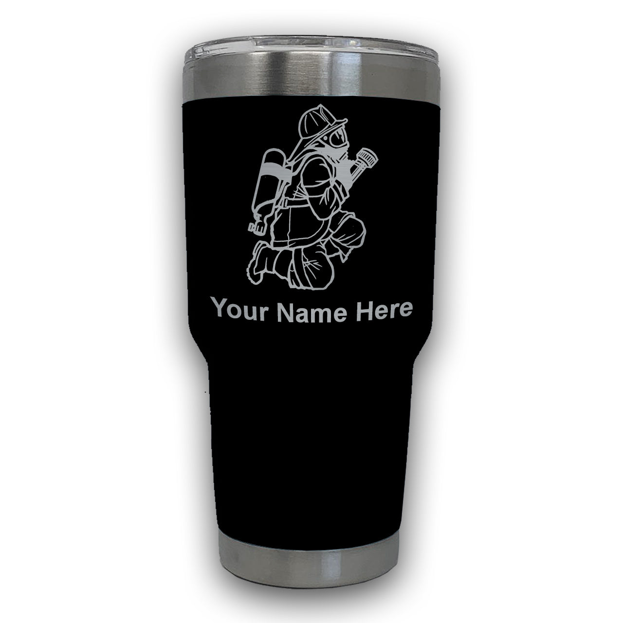 LaserGram 30oz Tumbler Mug, Fireman with Hose, Personalized Engraving Included