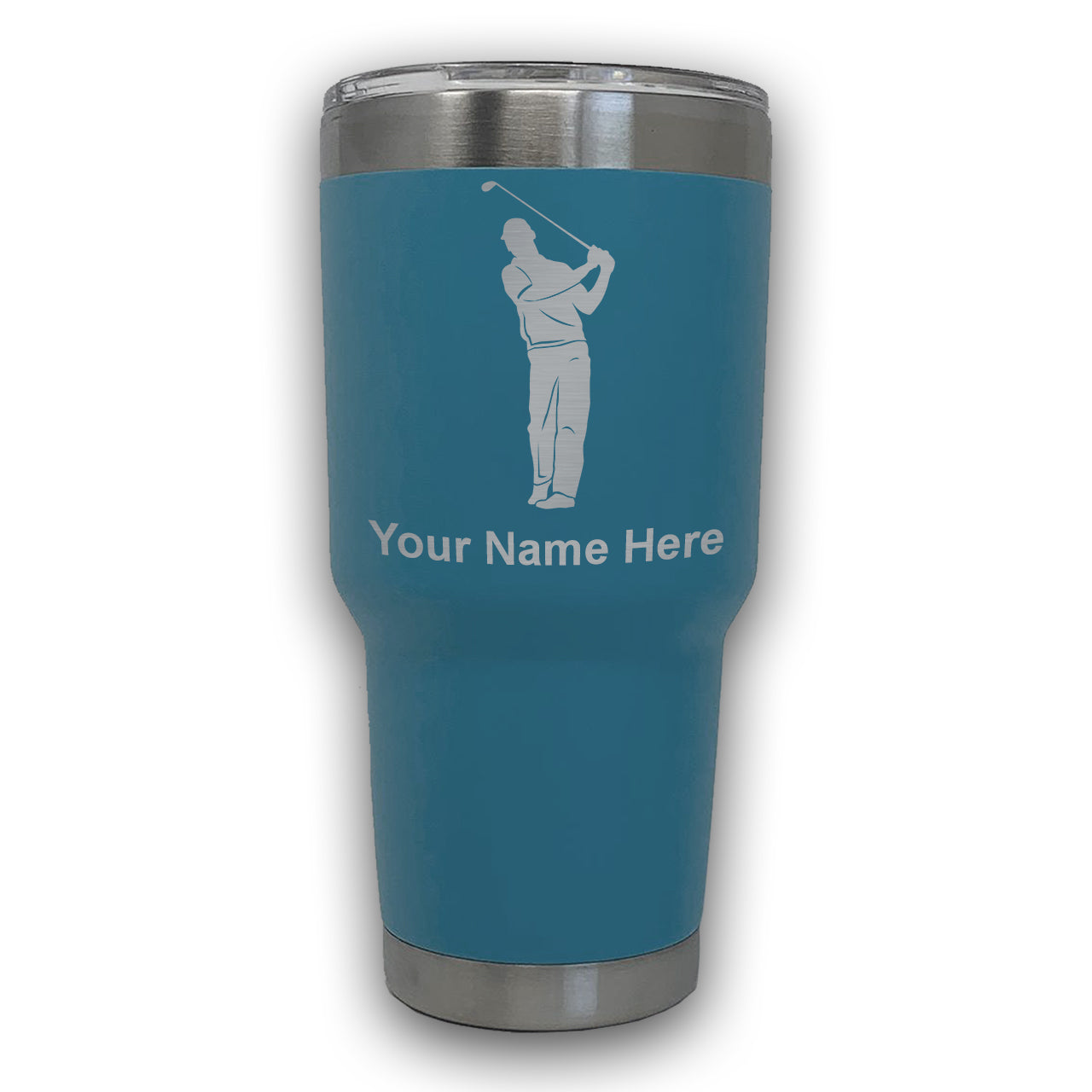 LaserGram 30oz Tumbler Mug, Golfer, Personalized Engraving Included