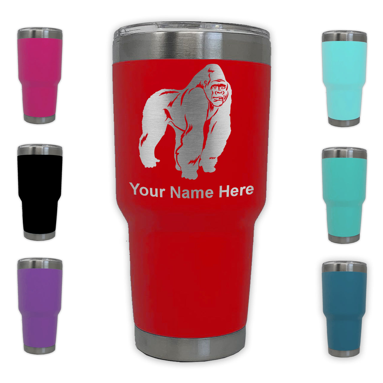 LaserGram 30oz Tumbler Mug, Gorilla, Personalized Engraving Included