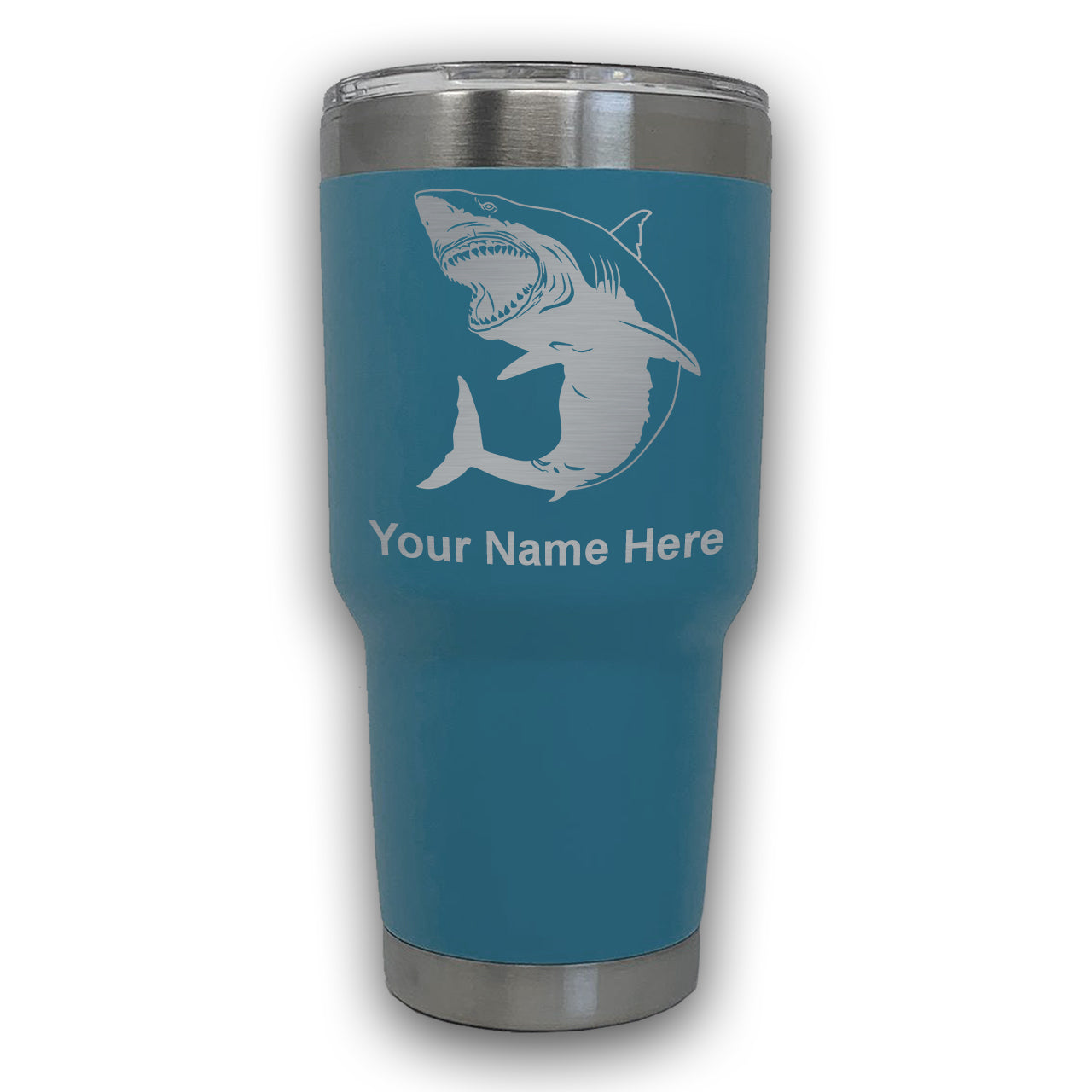 LaserGram 30oz Tumbler Mug, Great White Shark, Personalized Engraving Included