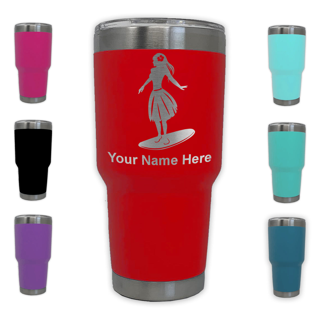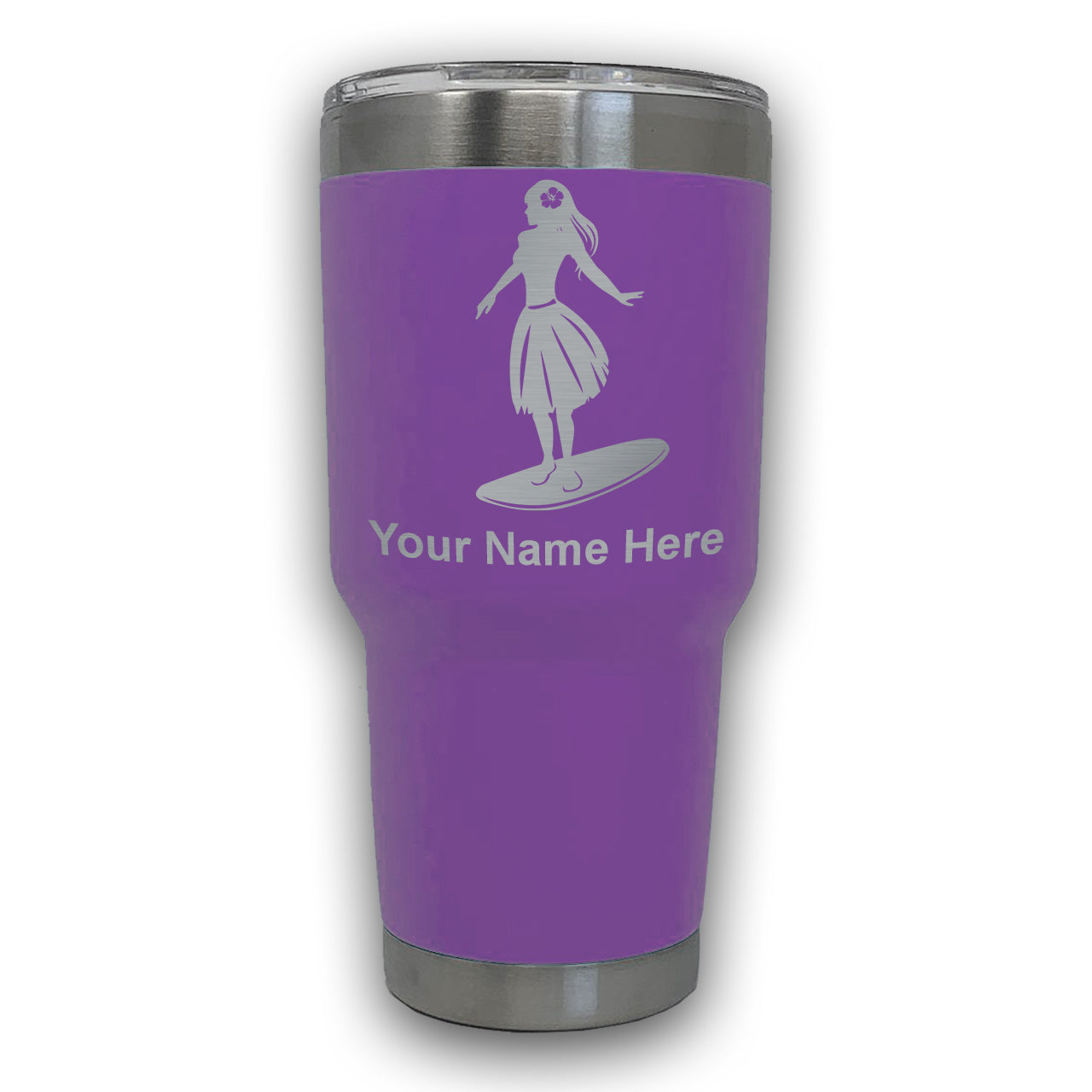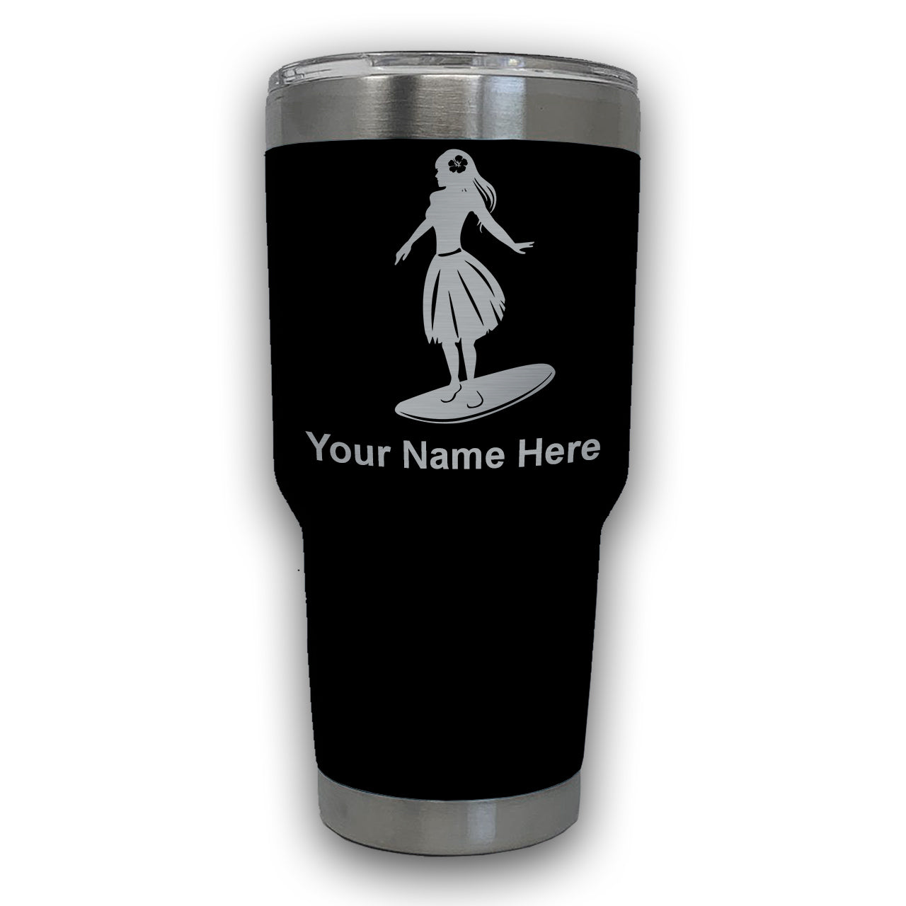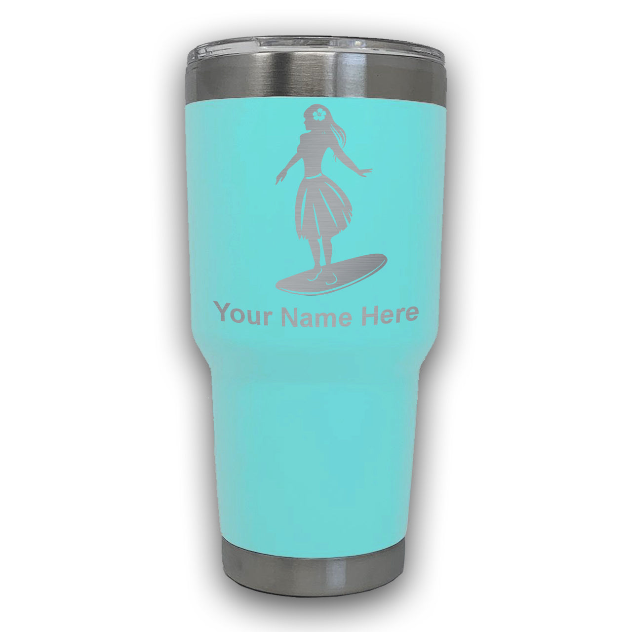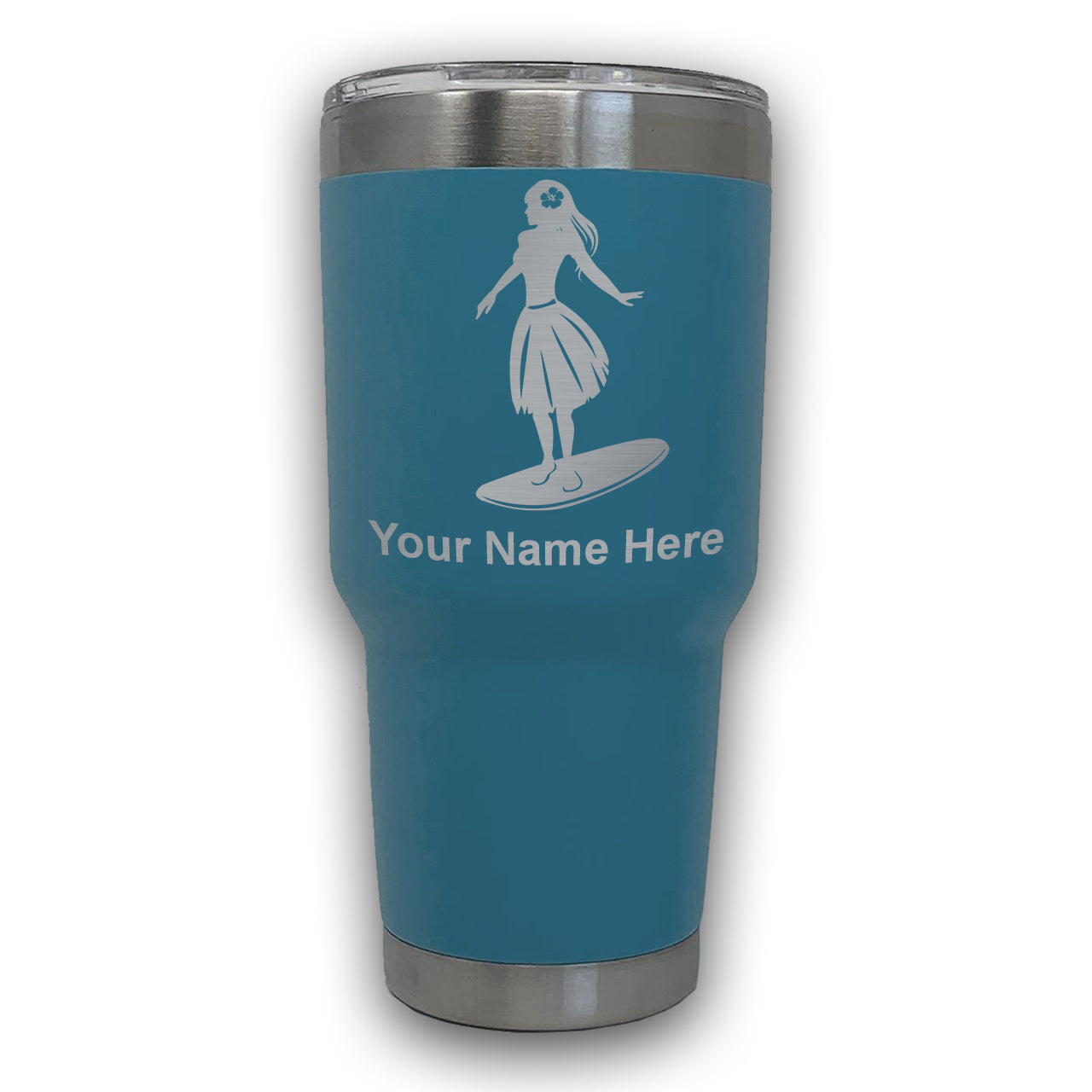LaserGram 30oz Tumbler Mug, Hawaiian Surfer Girl, Personalized Engraving Included
