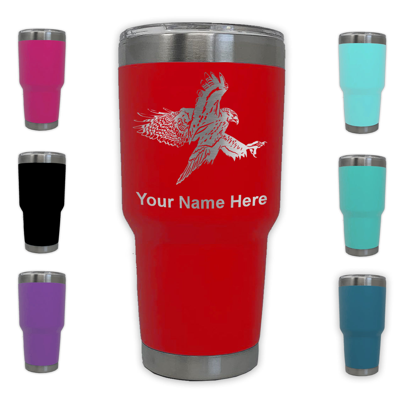 LaserGram 30oz Tumbler Mug, Hawk, Personalized Engraving Included