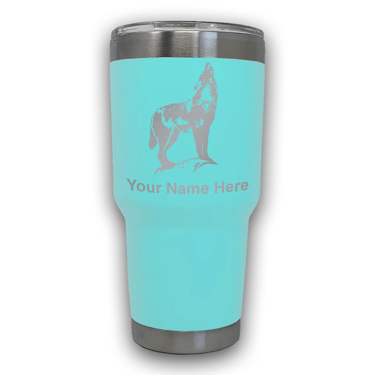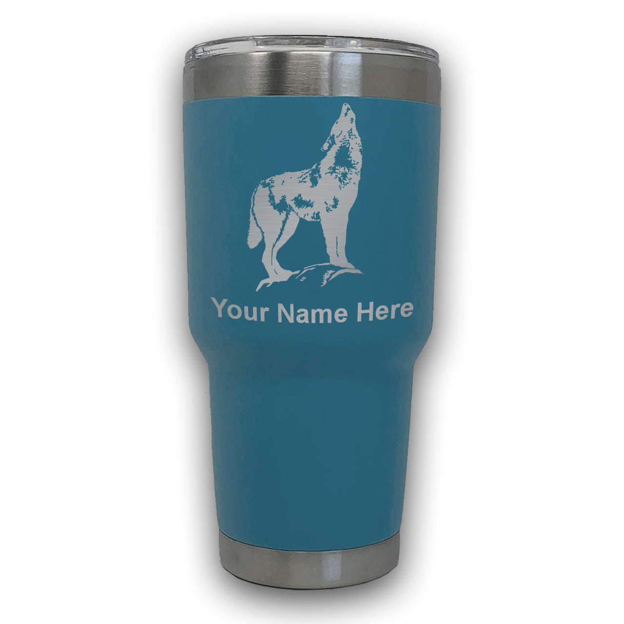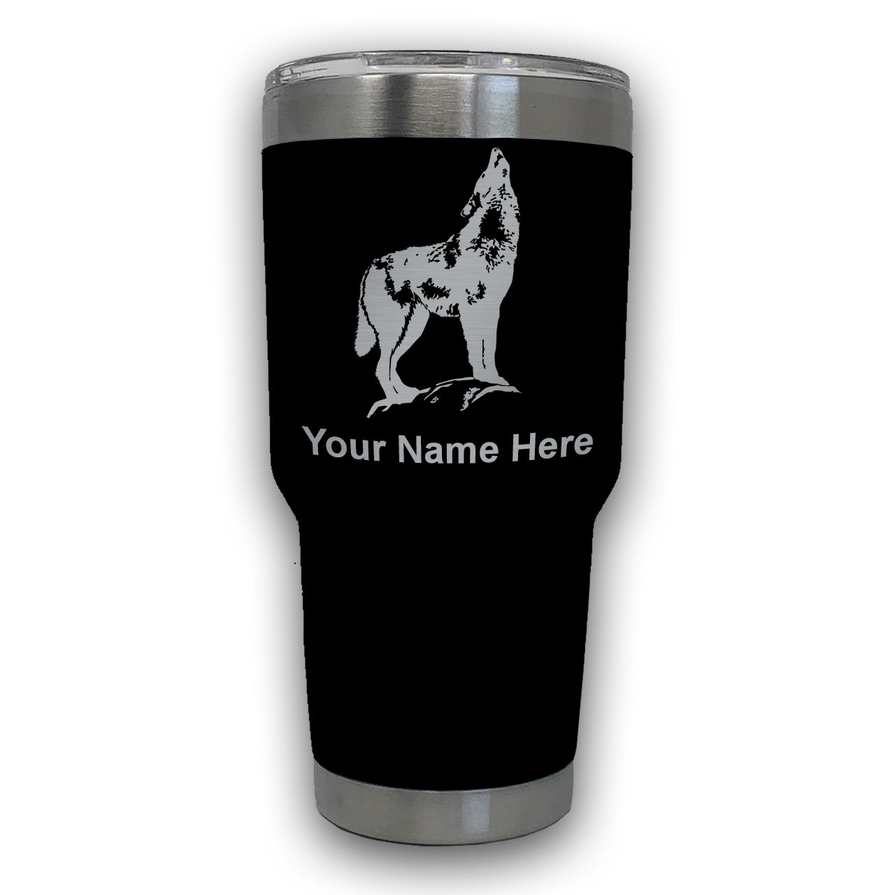 LaserGram 30oz Tumbler Mug, Howling Wolf, Personalized Engraving Included