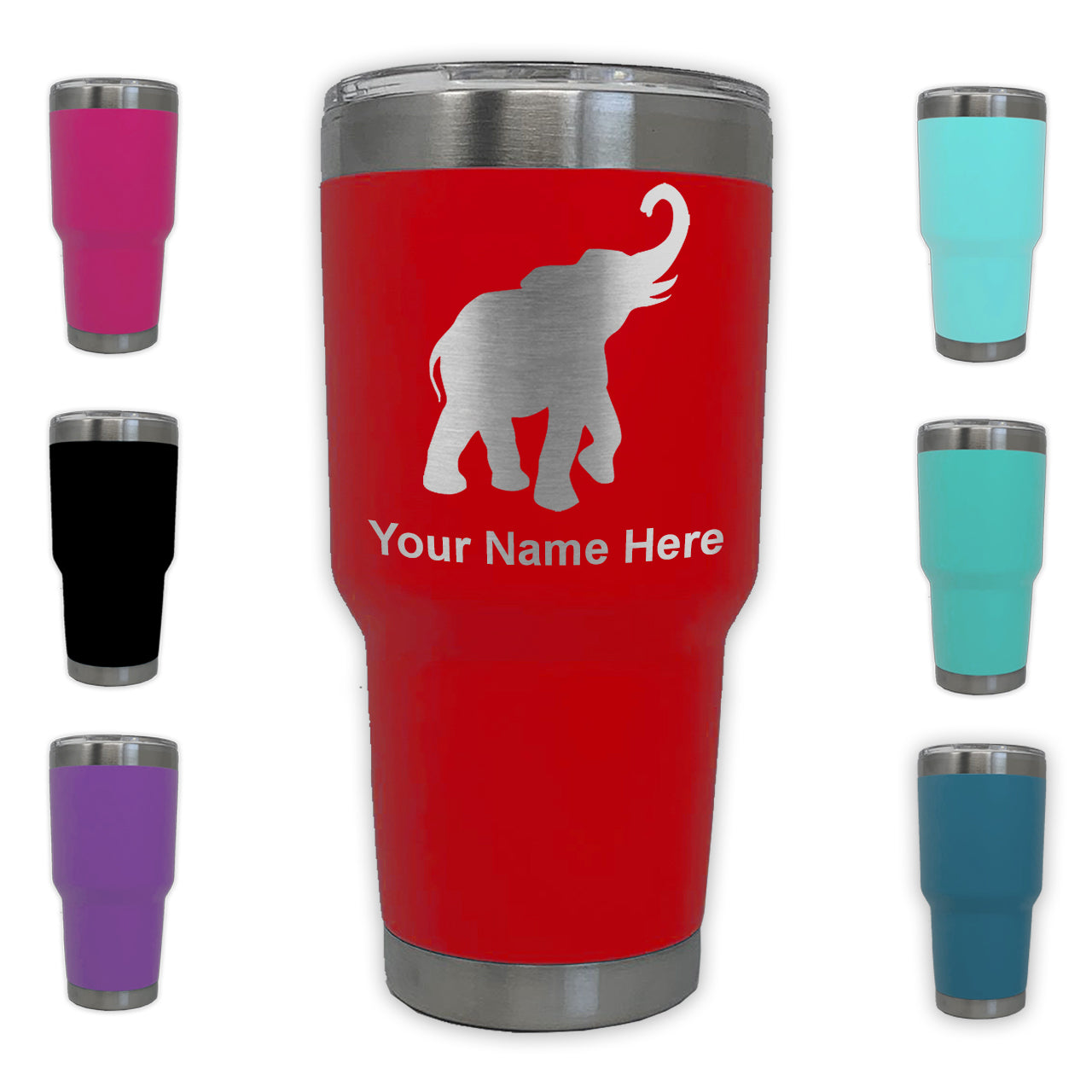 LaserGram 30oz Tumbler Mug, Indian Elephant, Personalized Engraving Included