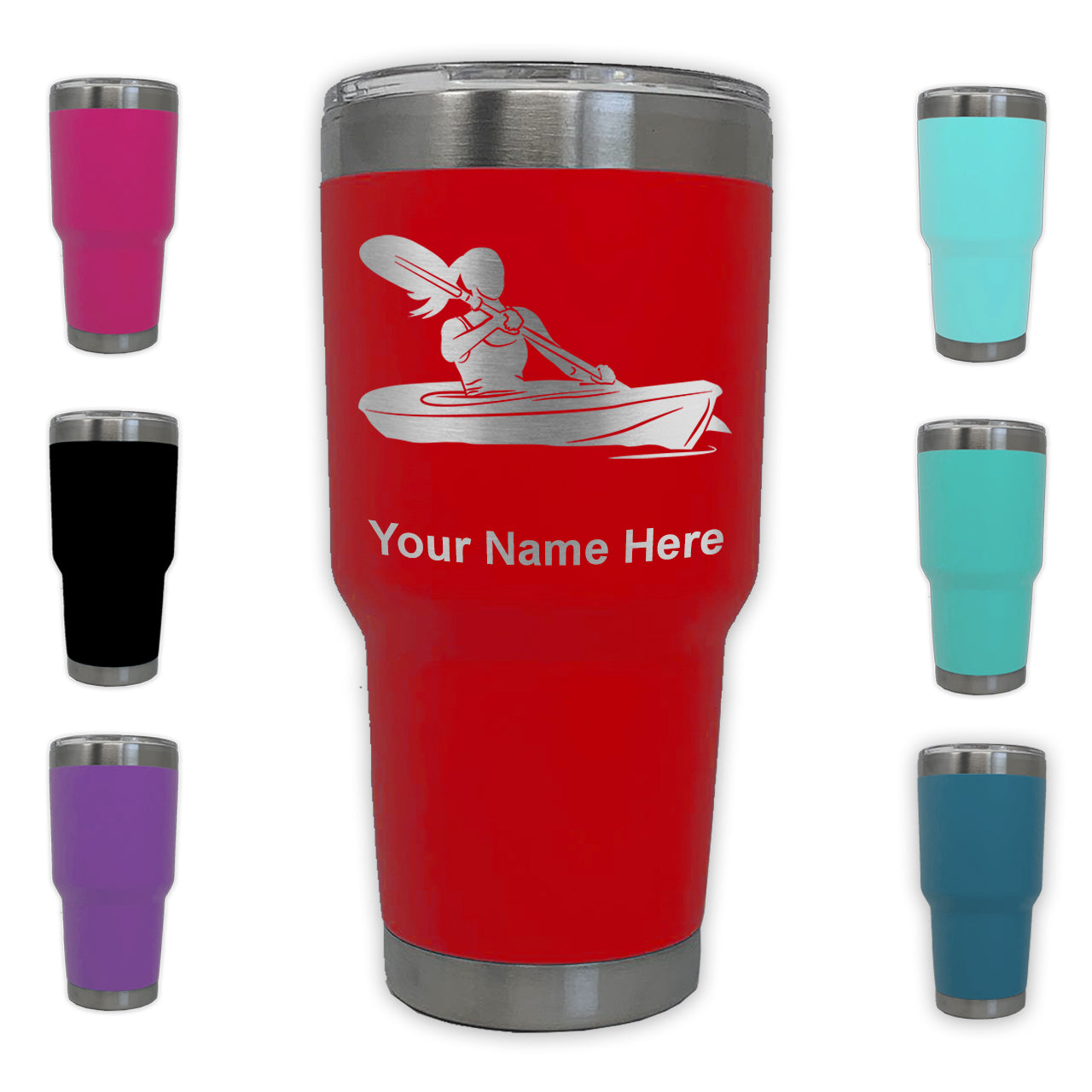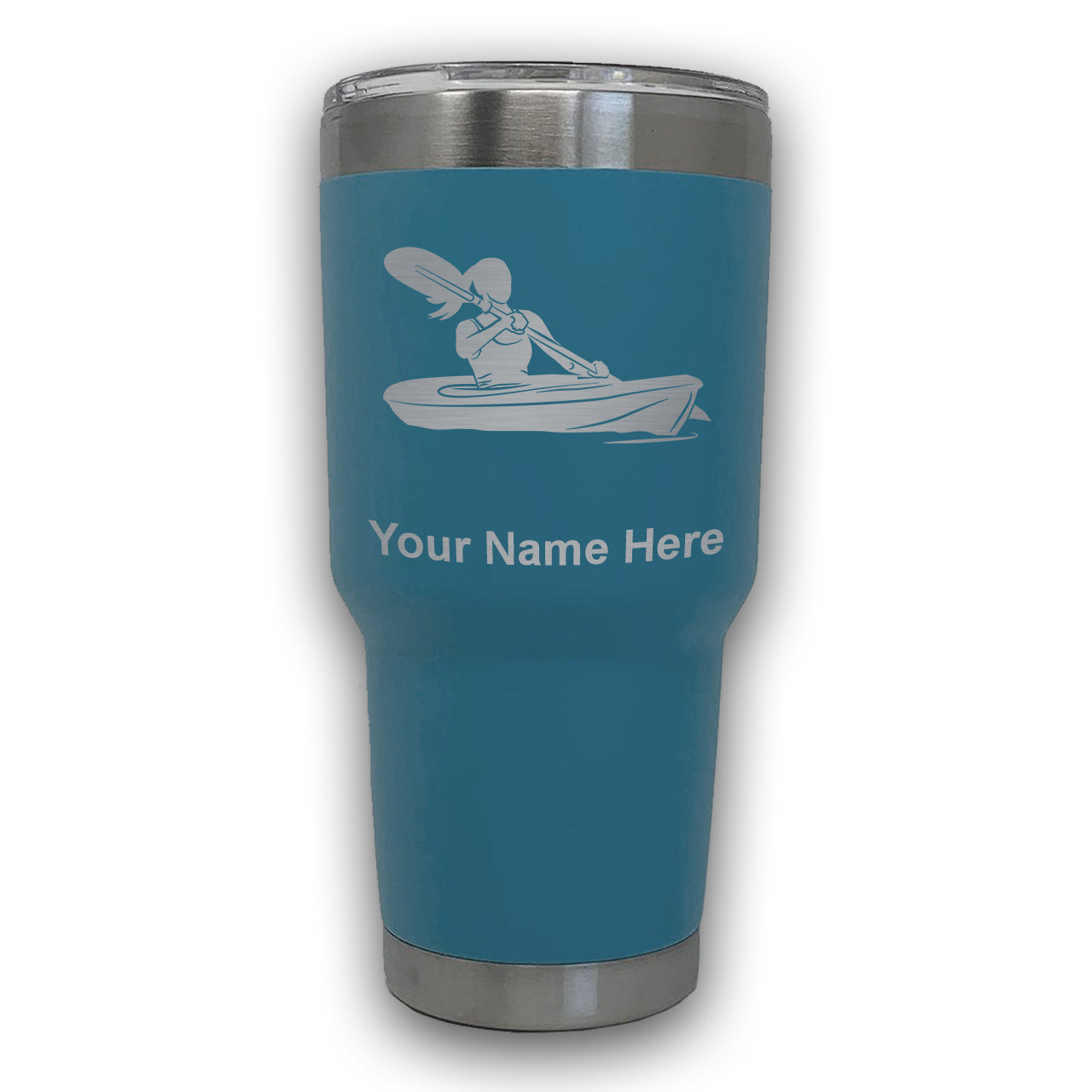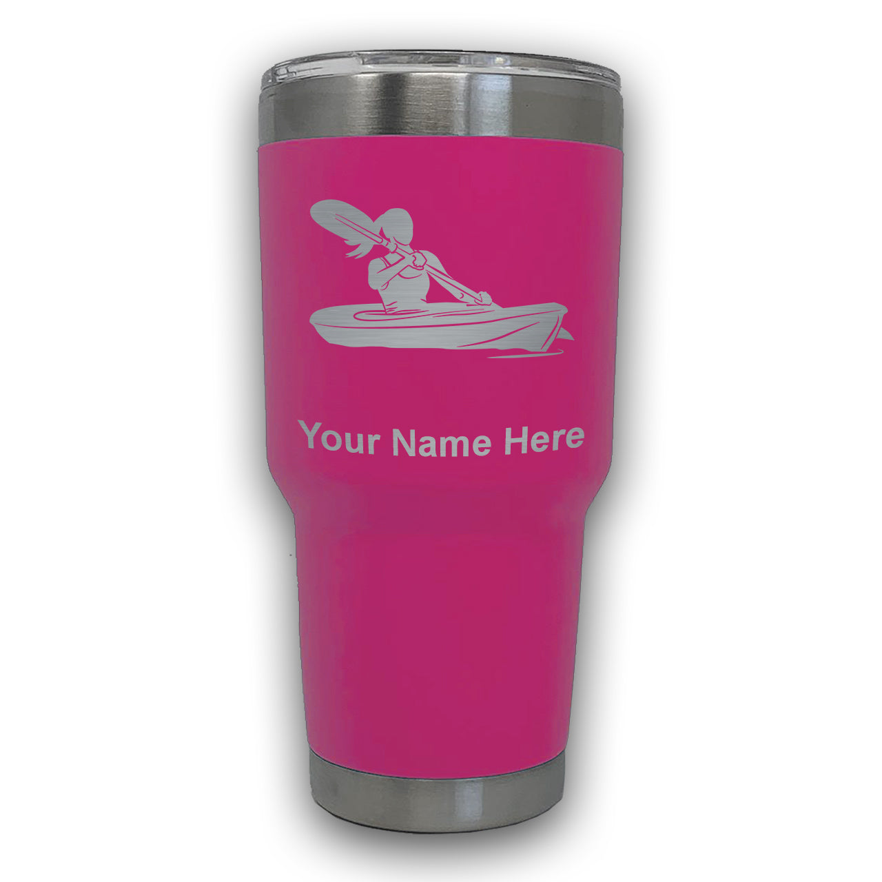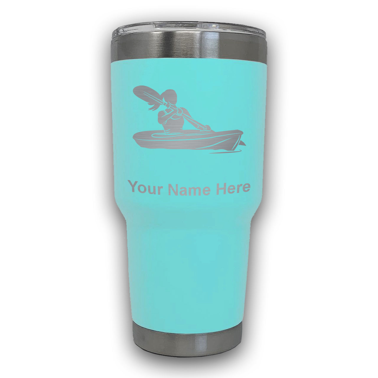 LaserGram 30oz Tumbler Mug, Kayak Woman, Personalized Engraving Included