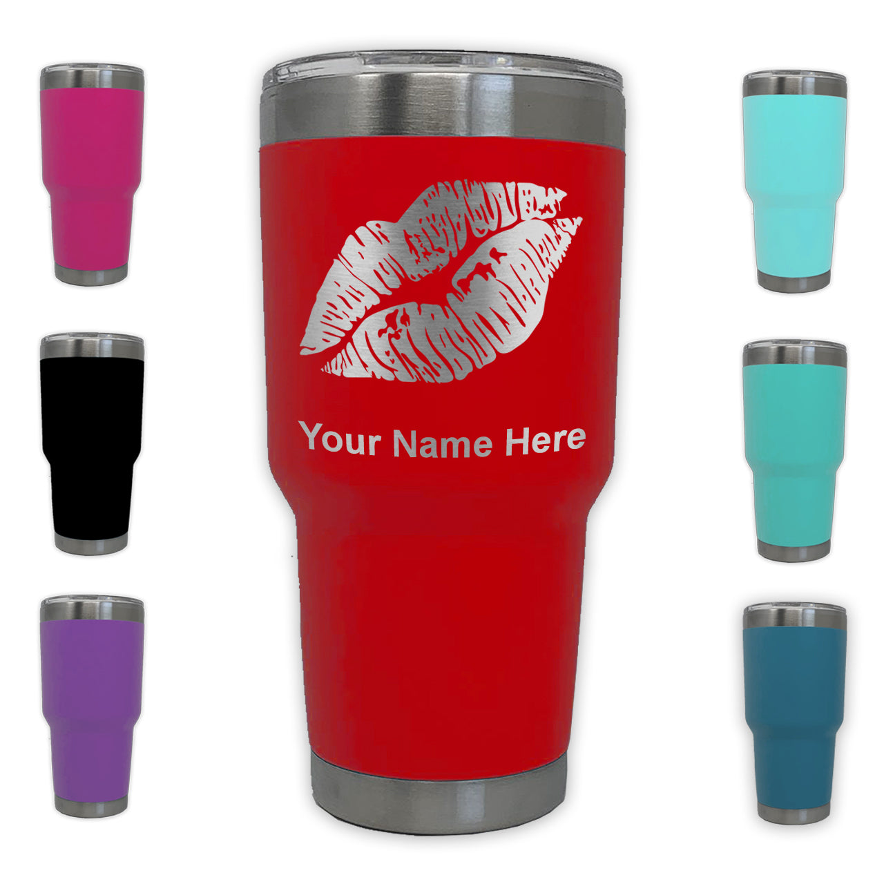 LaserGram 30oz Tumbler Mug, Lipstick Kiss, Personalized Engraving Included