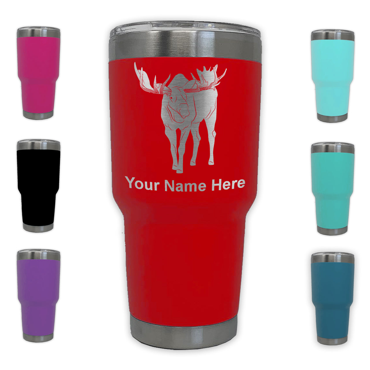 LaserGram 30oz Tumbler Mug, Moose, Personalized Engraving Included