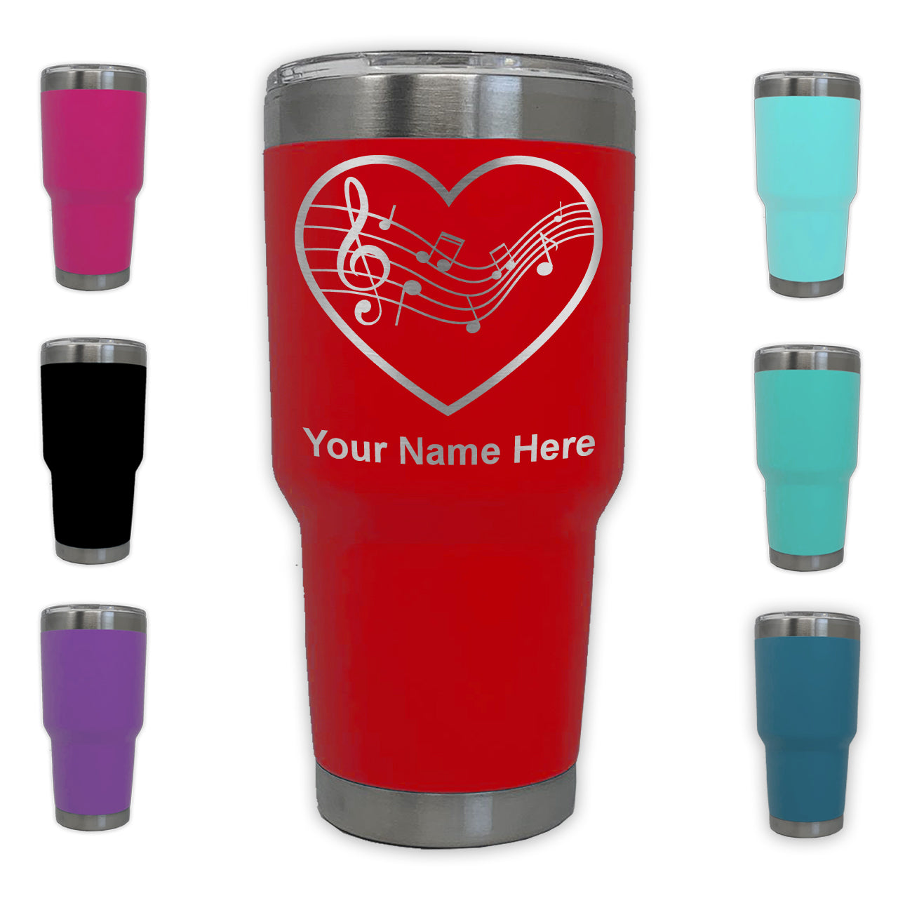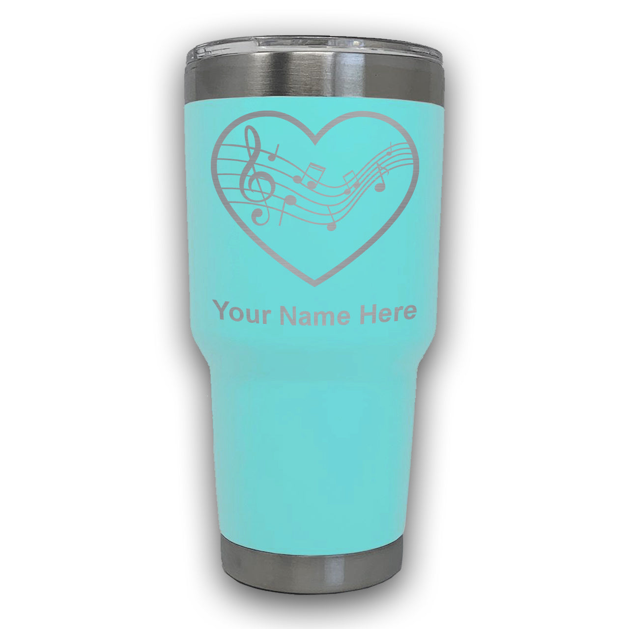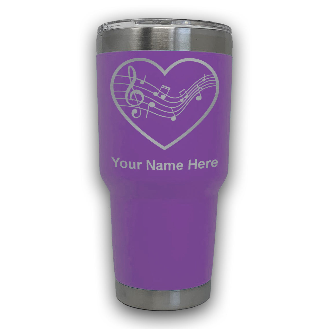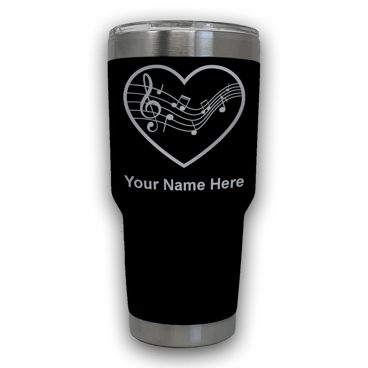 LaserGram 30oz Tumbler Mug, Music Staff Heart, Personalized Engraving Included