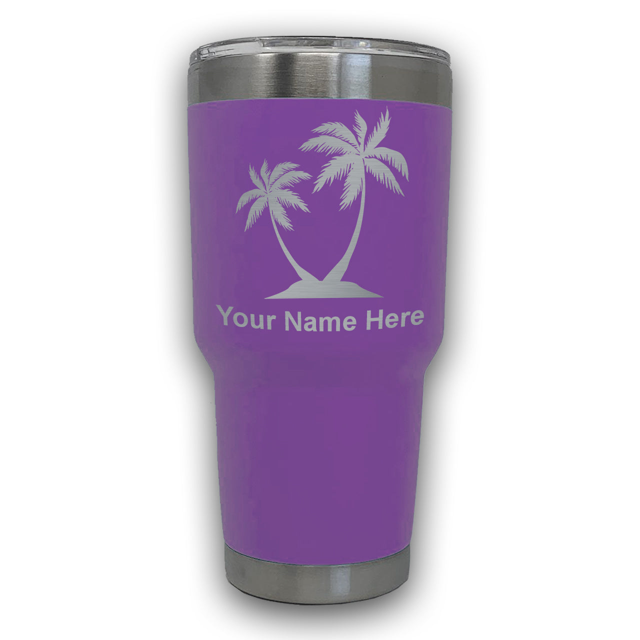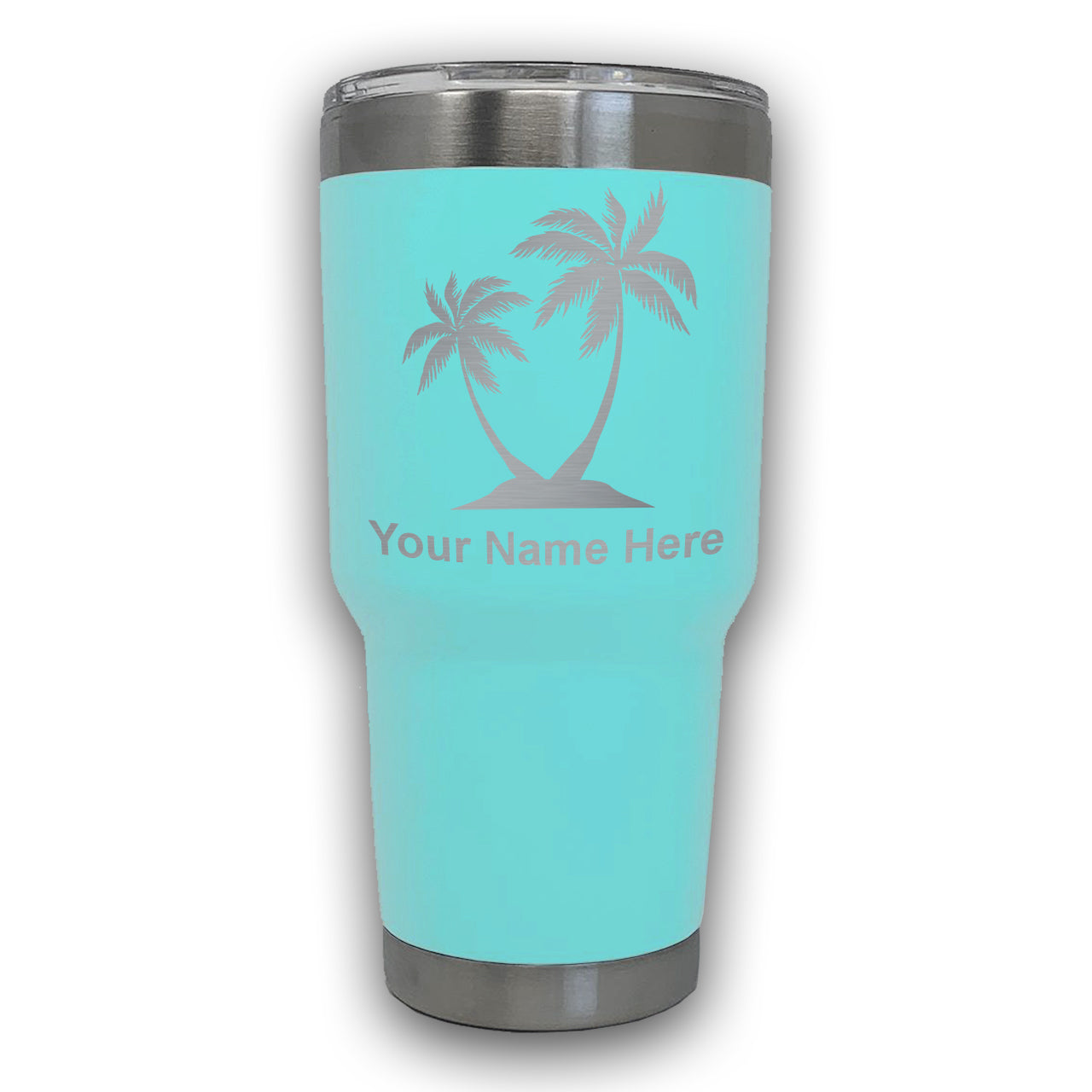 LaserGram 30oz Tumbler Mug, Palm Trees, Personalized Engraving Included