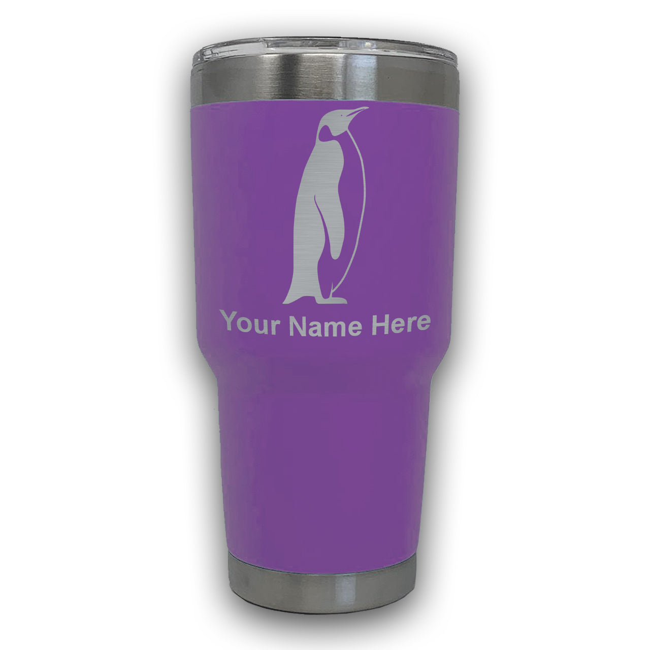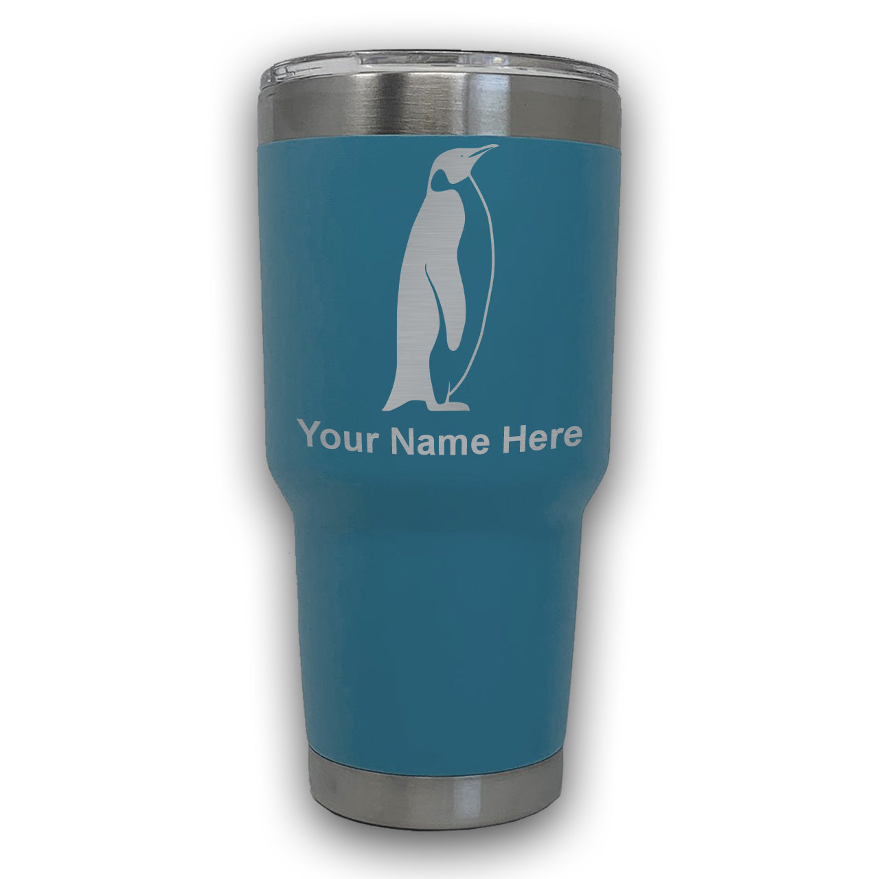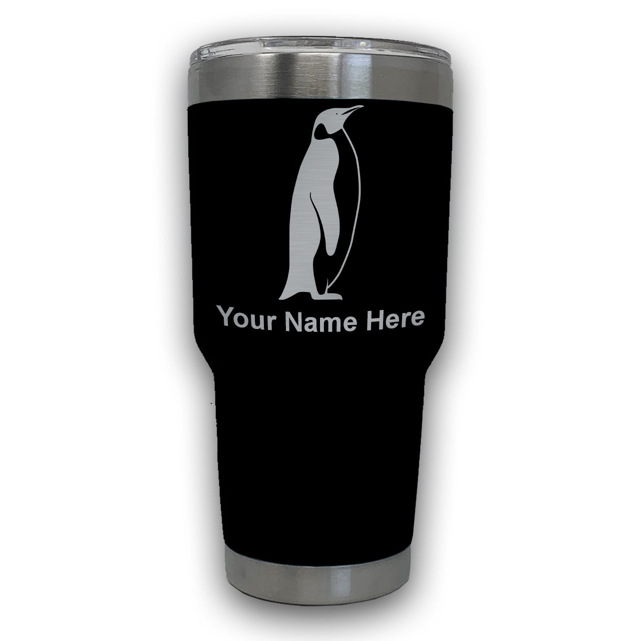 LaserGram 30oz Tumbler Mug, Penguin, Personalized Engraving Included