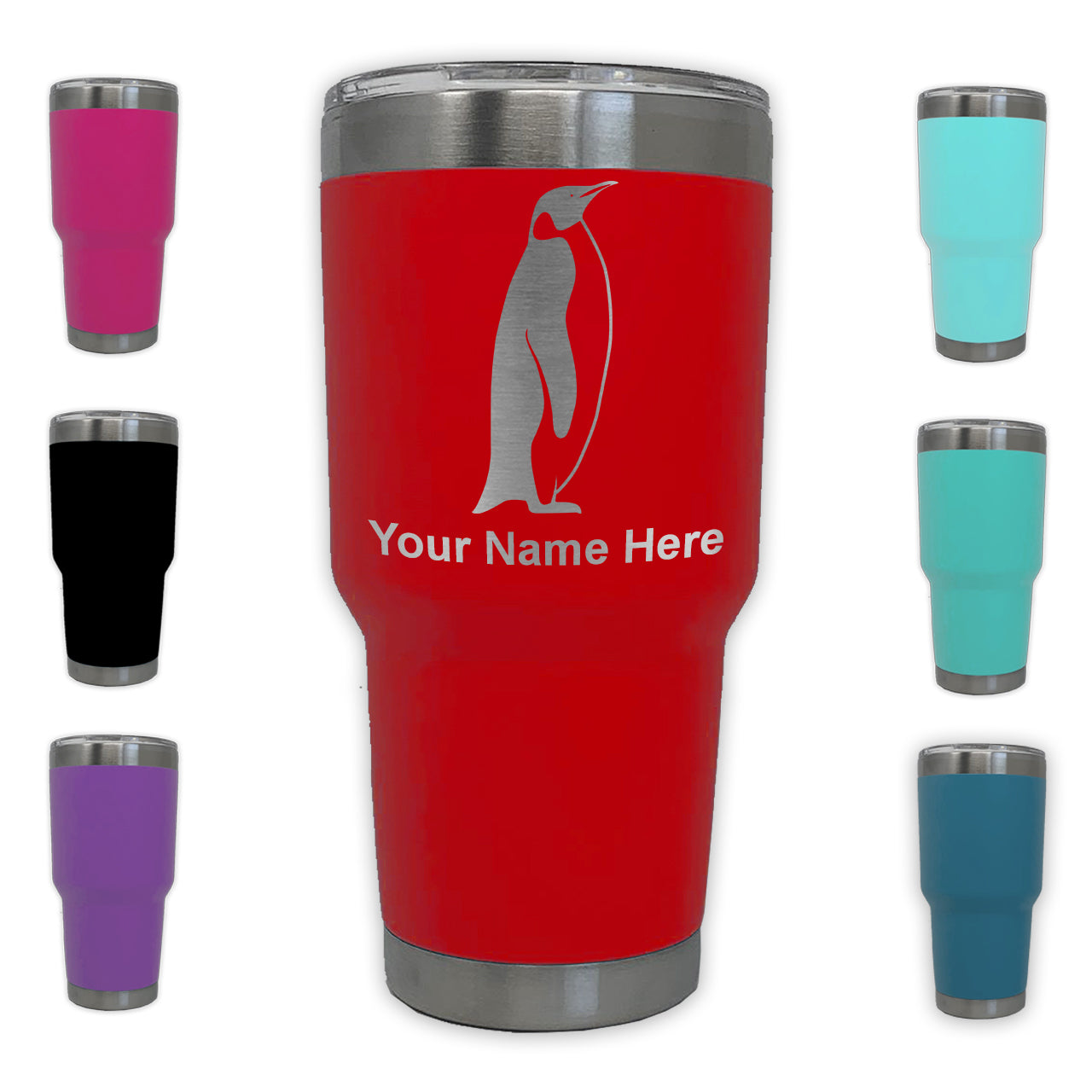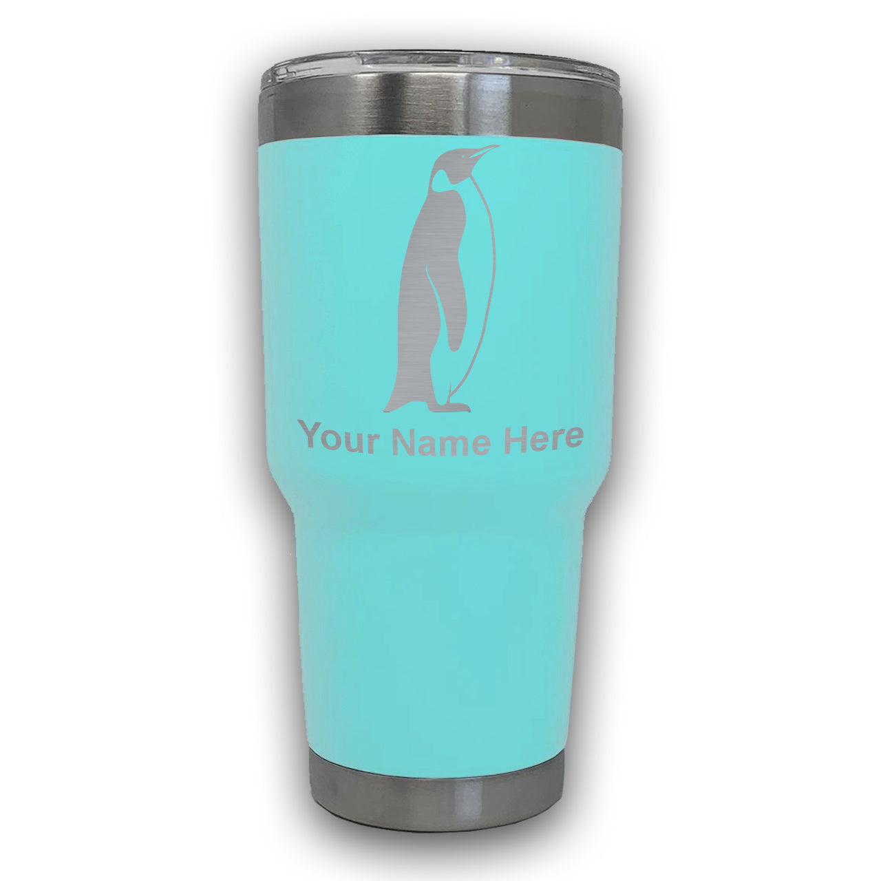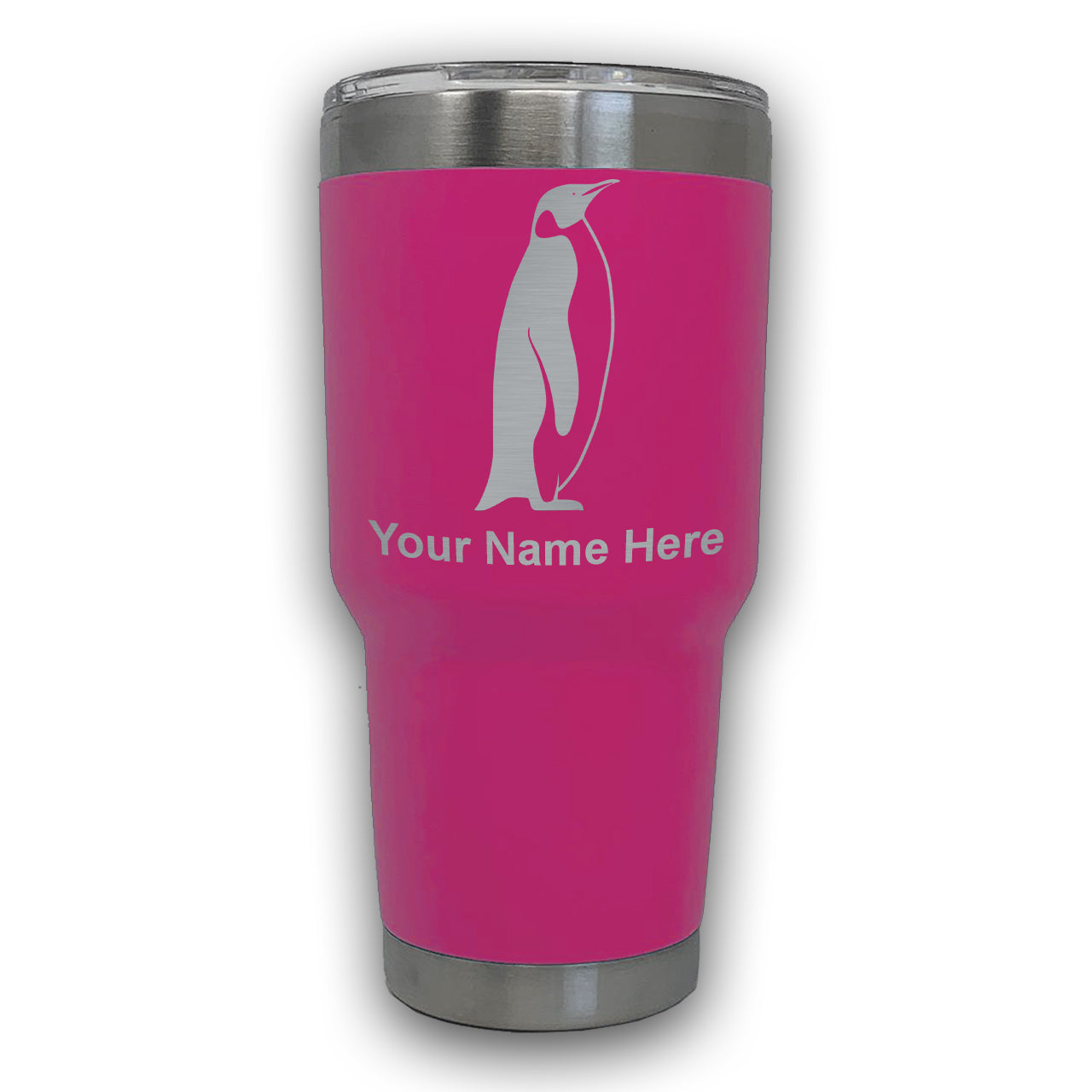 LaserGram 30oz Tumbler Mug, Penguin, Personalized Engraving Included