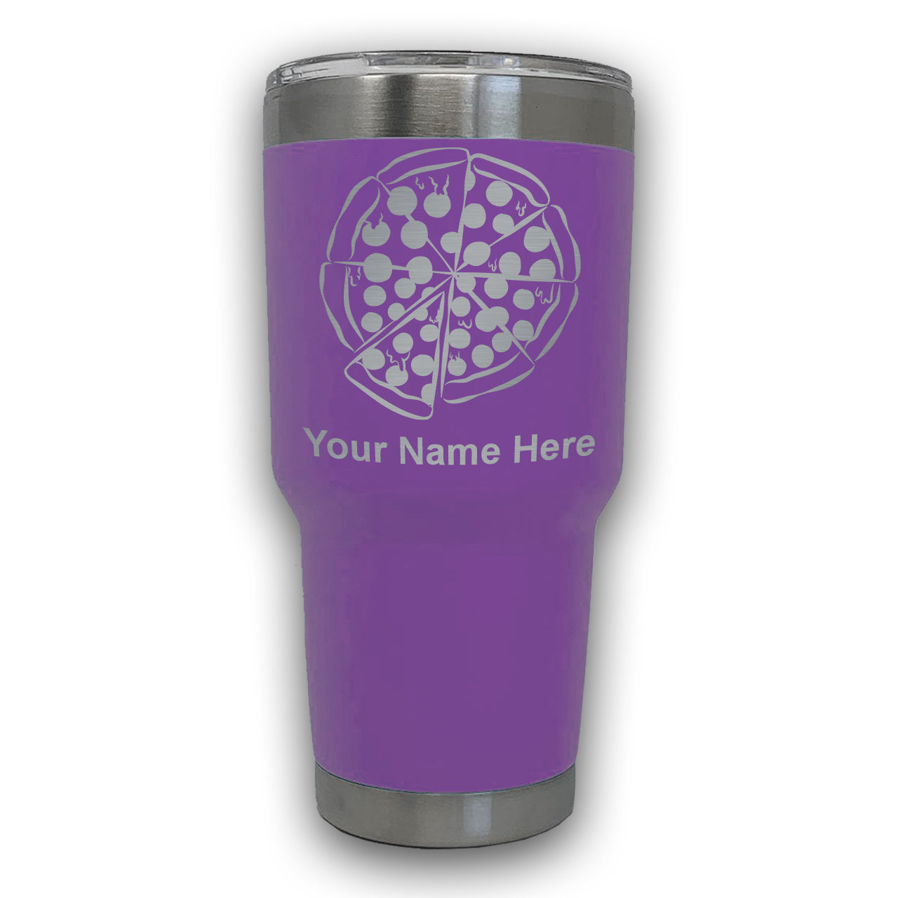 LaserGram 30oz Tumbler Mug, Pizza, Personalized Engraving Included