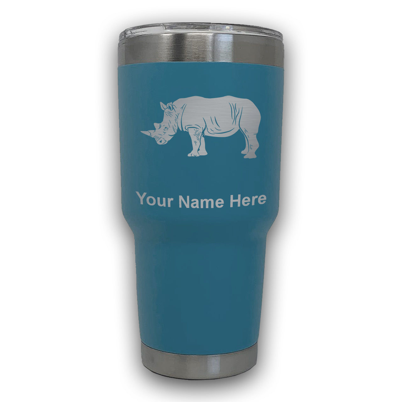 LaserGram 30oz Tumbler Mug, Rhinoceros, Personalized Engraving Included