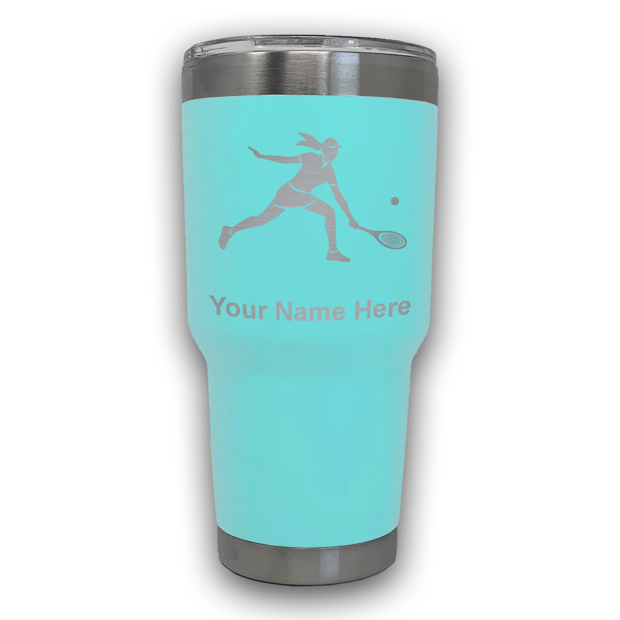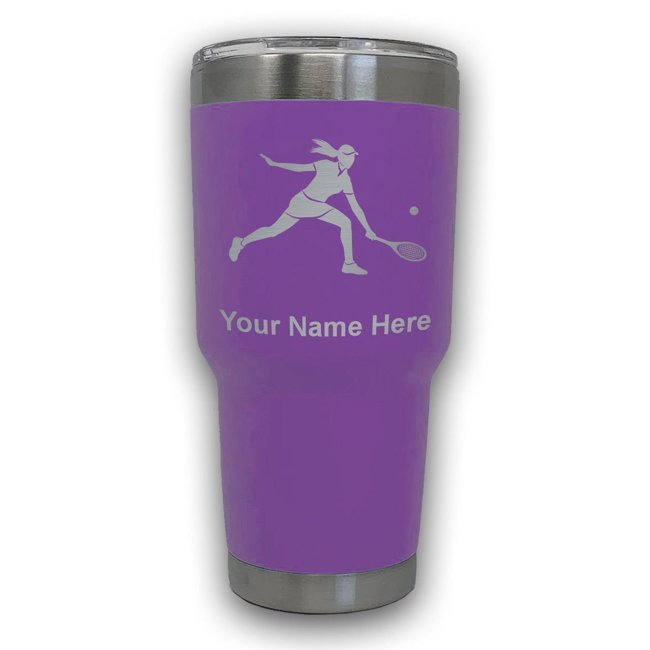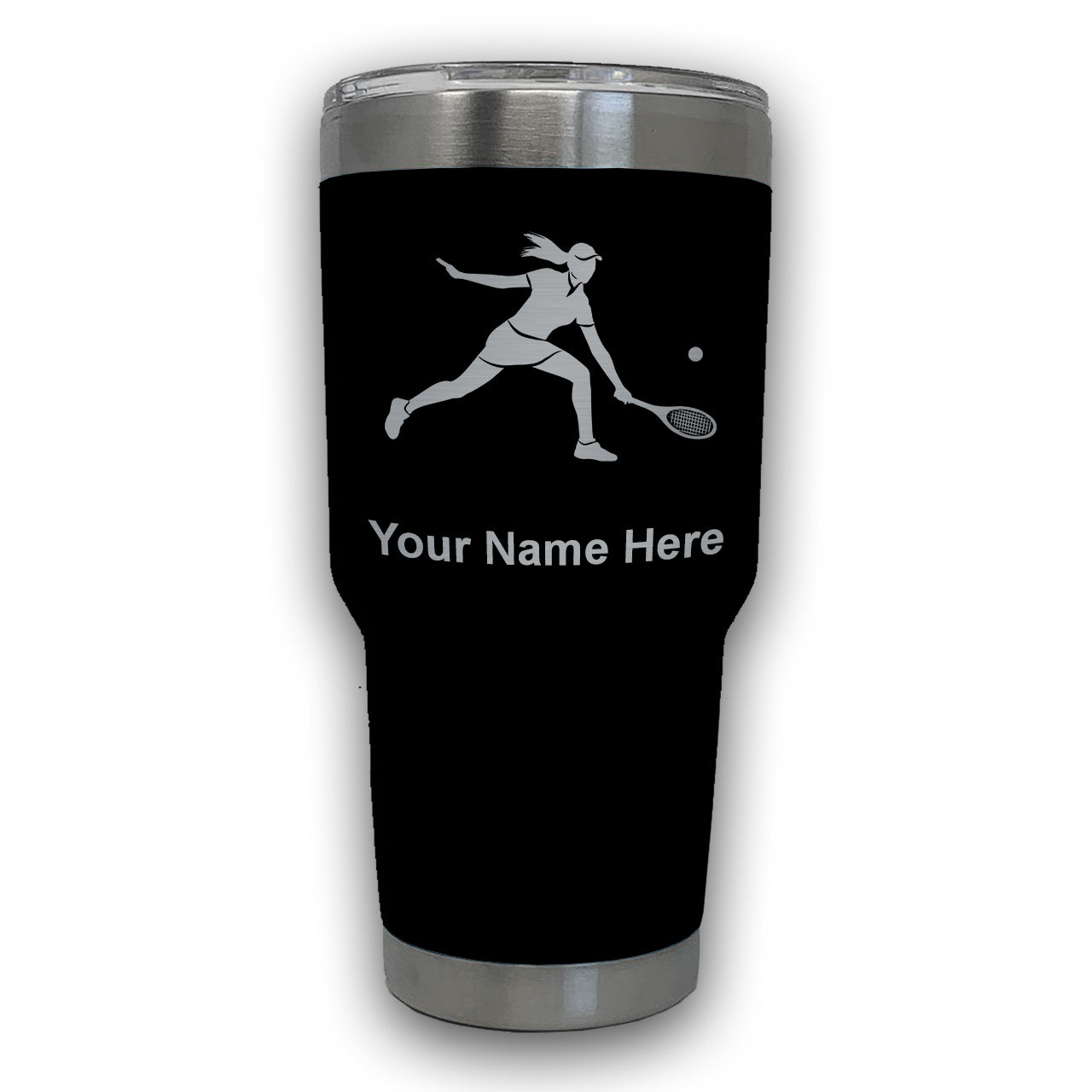 LaserGram 30oz Tumbler Mug, Tennis Player Woman, Personalized Engraving Included