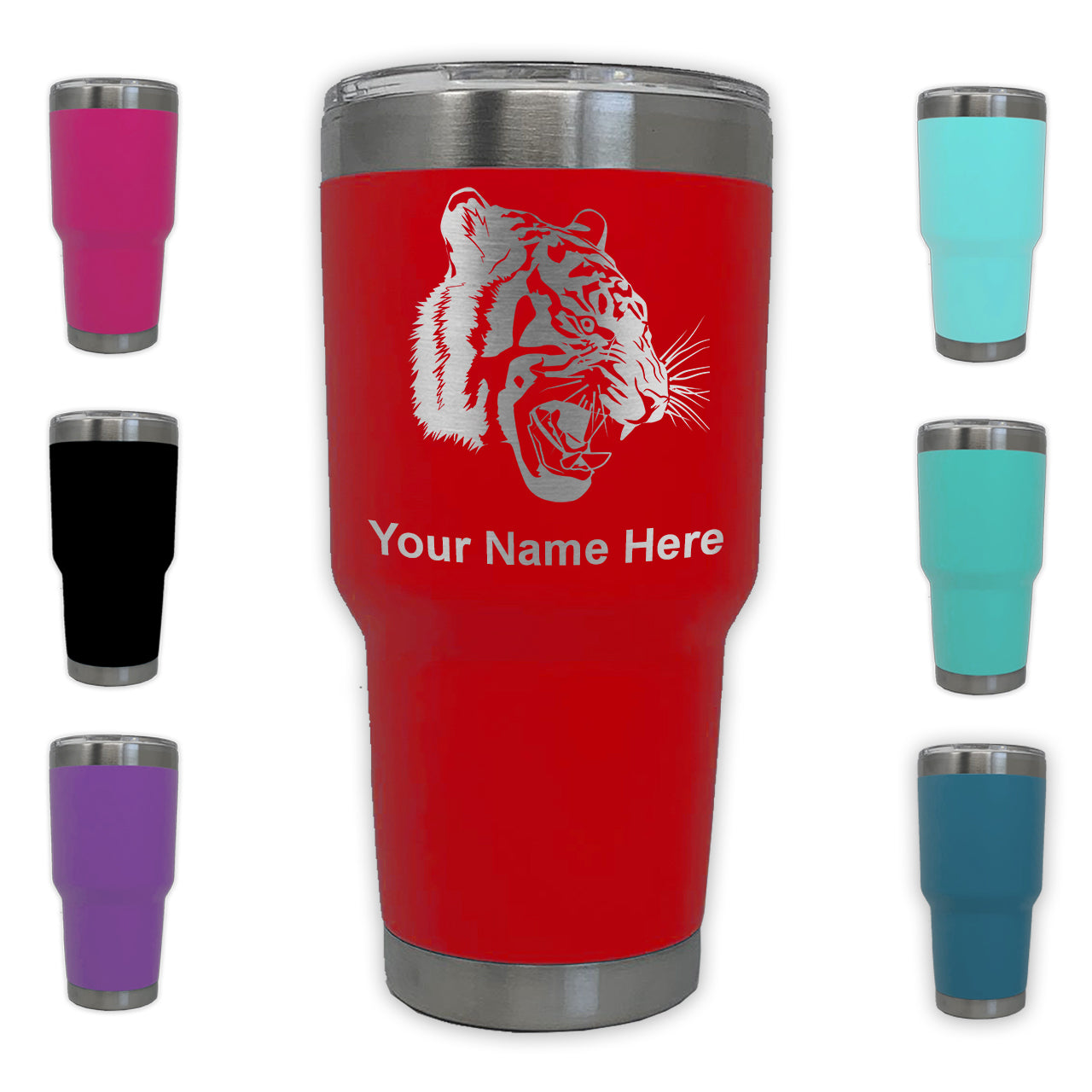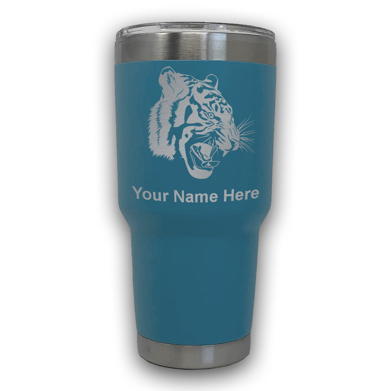 LaserGram 30oz Tumbler Mug, Tiger Head, Personalized Engraving Included