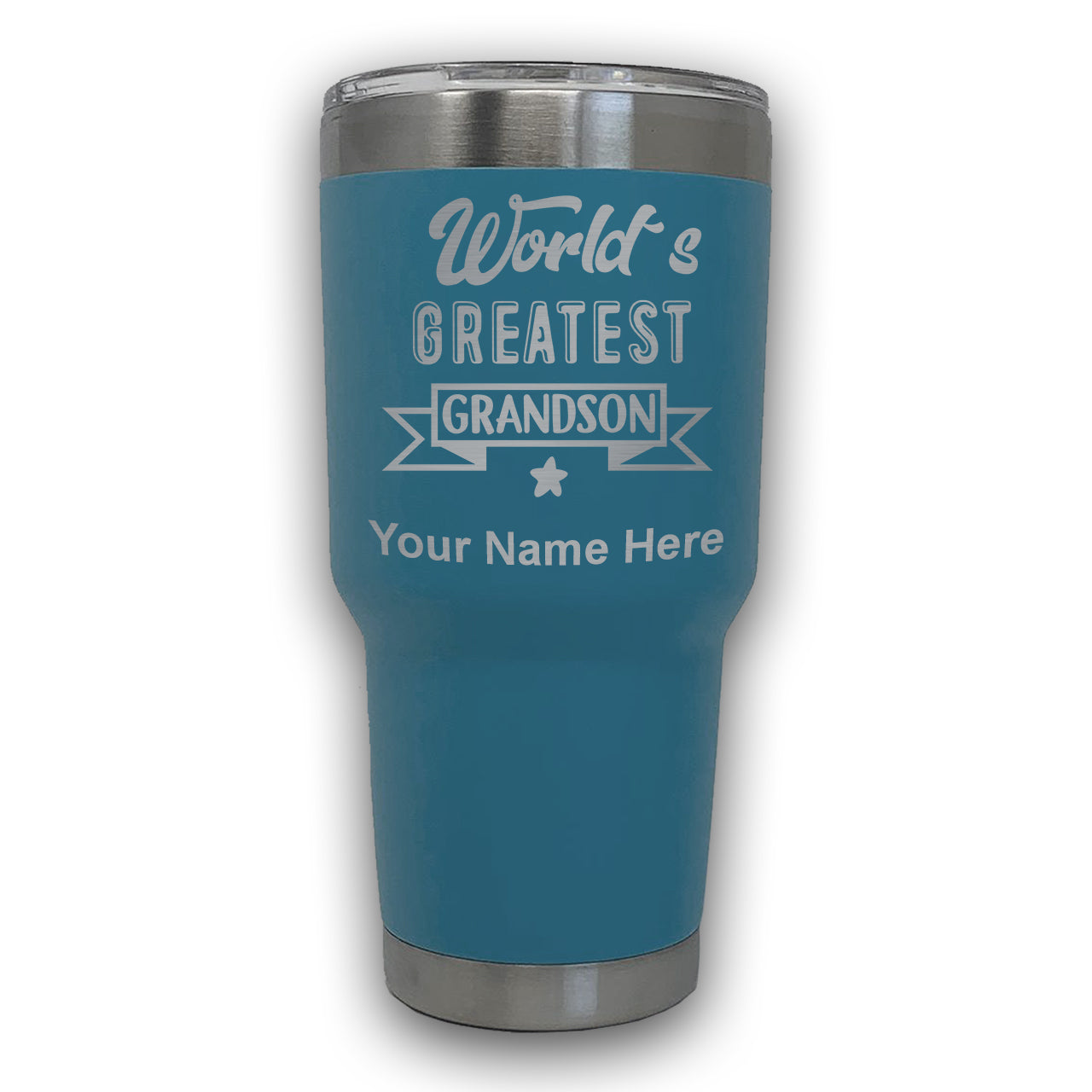 LaserGram 30oz Tumbler Mug, World's Greatest Grandson, Personalized Engraving Included