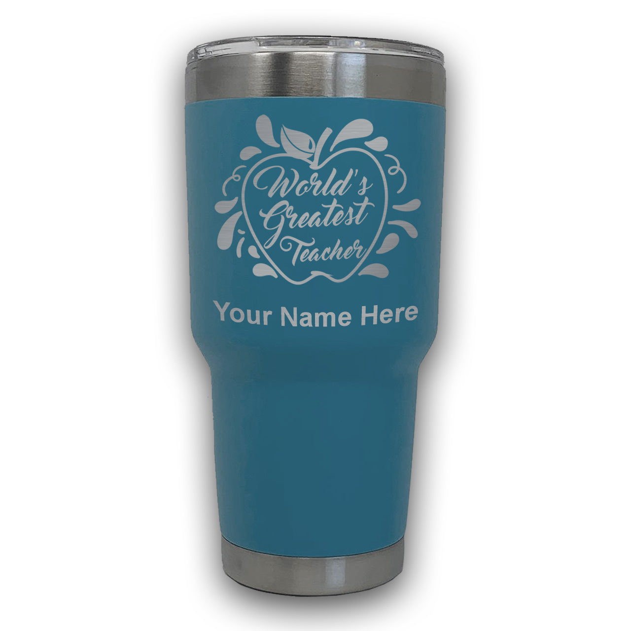 LaserGram 30oz Tumbler Mug, World's Greatest Teacher, Personalized Engraving Included
