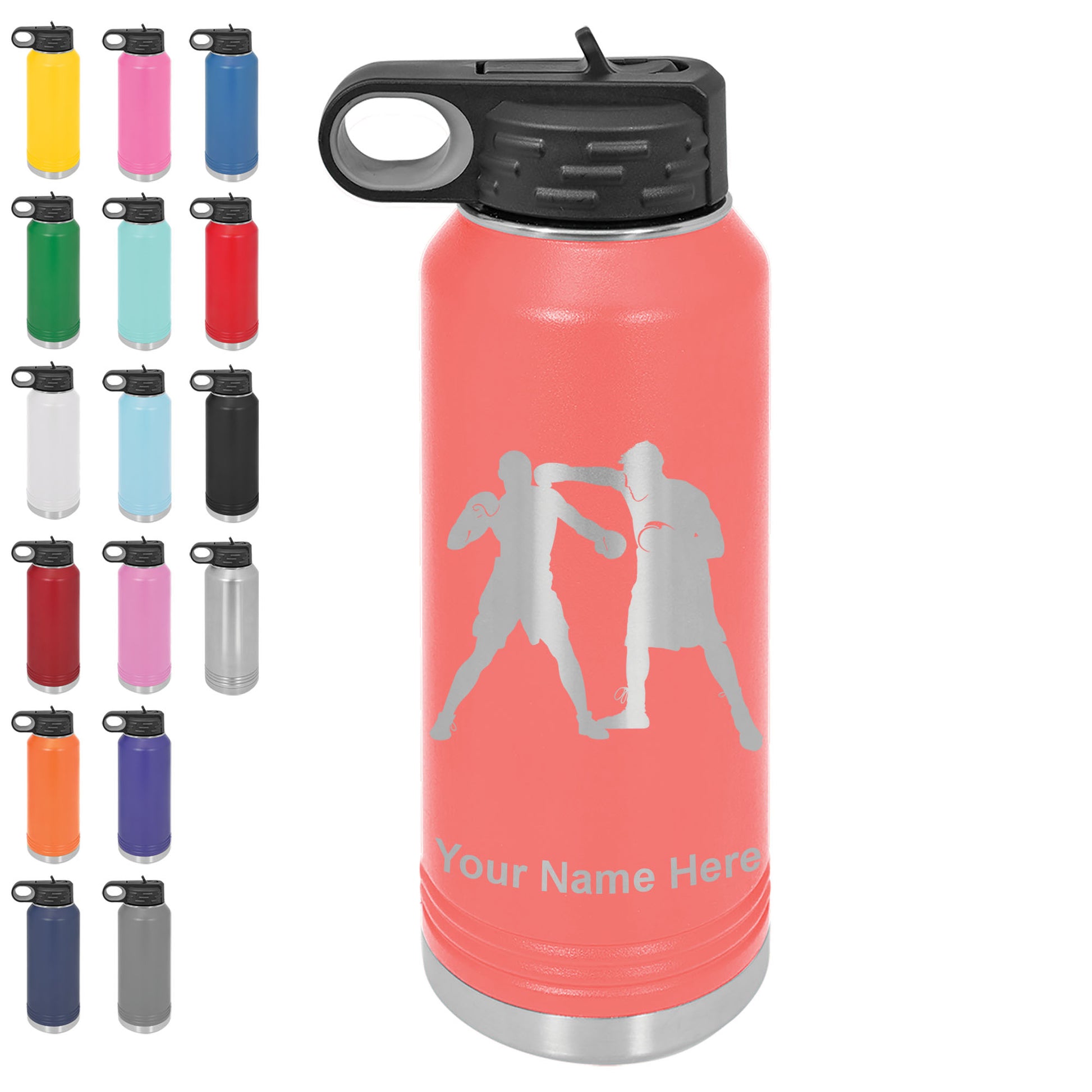 LaserGram 32oz Double Wall Flip Top Water Bottle with Straw, Boxers Boxing, Personalized Engraving Included
