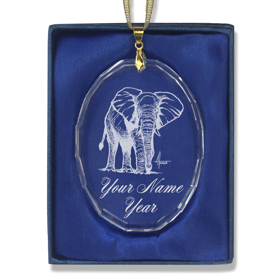 LaserGram Christmas Ornament, African Elephant, Personalized Engraving Included (Oval Shape)