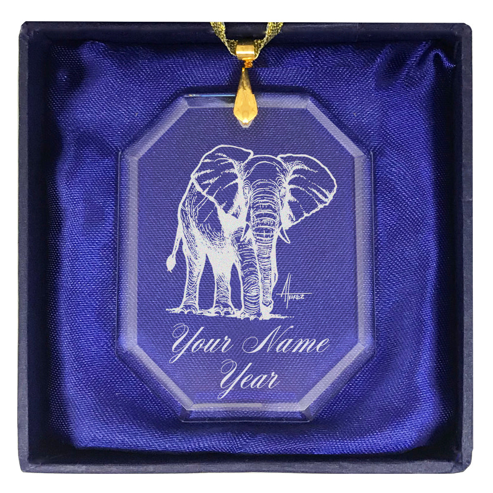 LaserGram Christmas Ornament, African Elephant, Personalized Engraving Included (Rectangle Shape)
