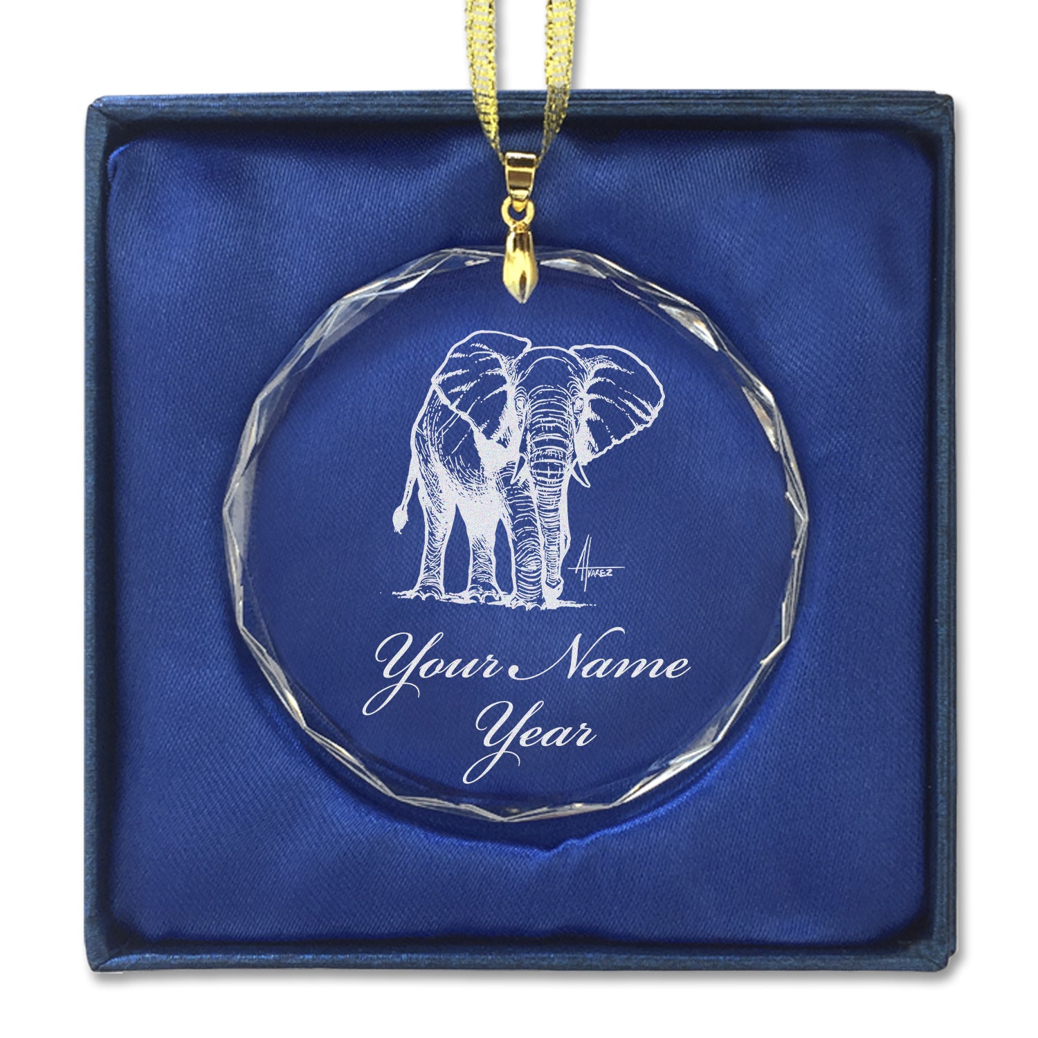 LaserGram Christmas Ornament, African Elephant, Personalized Engraving Included (Round Shape)