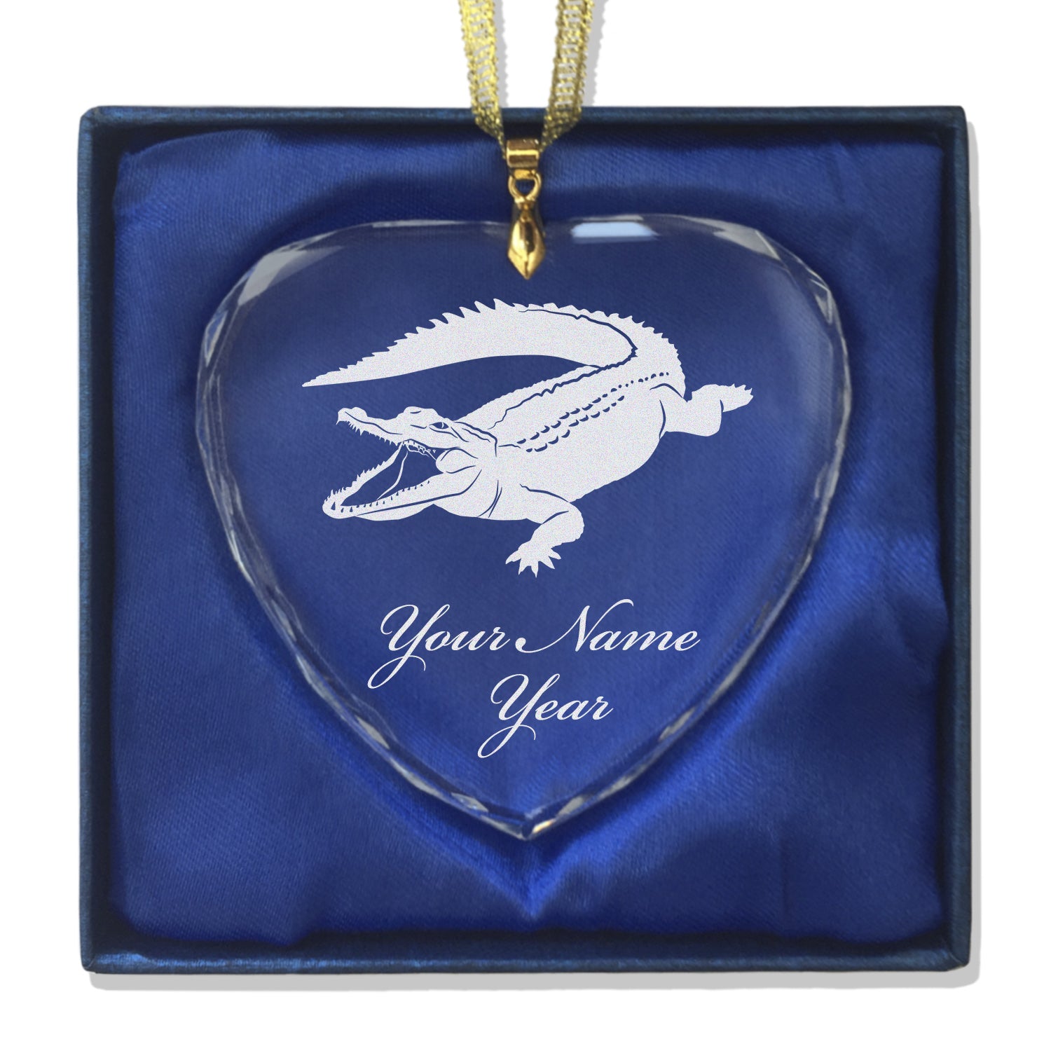 LaserGram Christmas Ornament, Alligator, Personalized Engraving Included (Heart Shape)