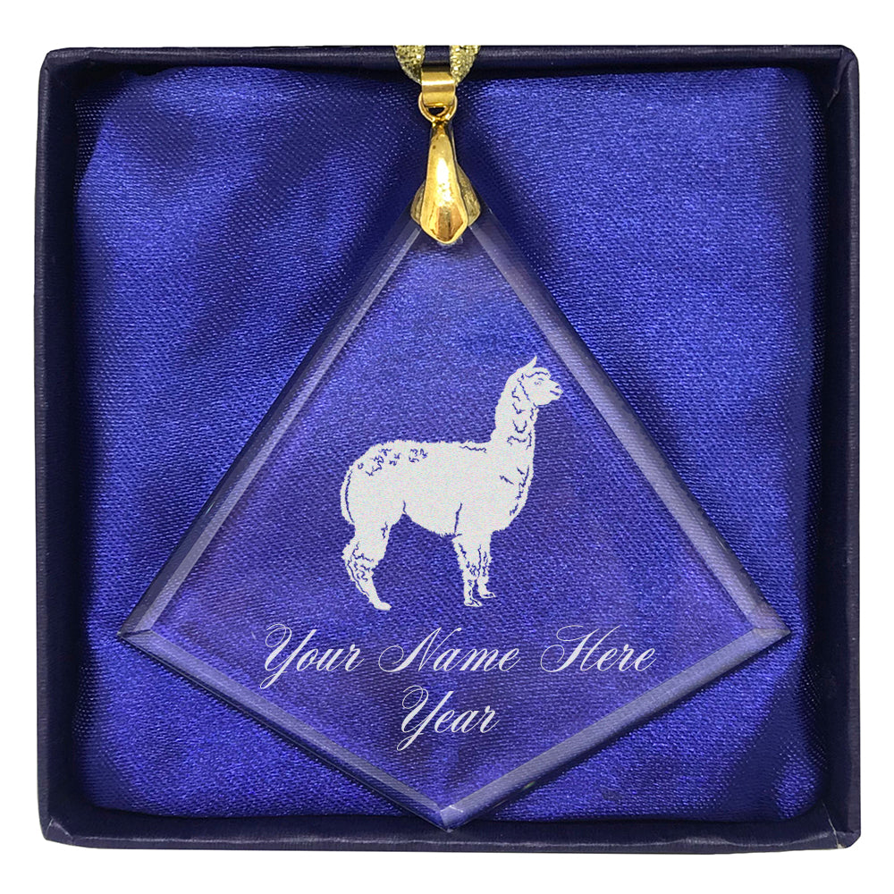 LaserGram Christmas Ornament, Alpaca, Personalized Engraving Included (Diamond Shape)