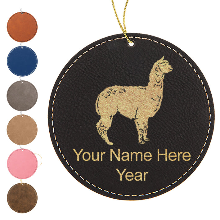 LaserGram Christmas Ornament, Alpaca, Personalized Engraving Included (Faux Leather, Round Shape)