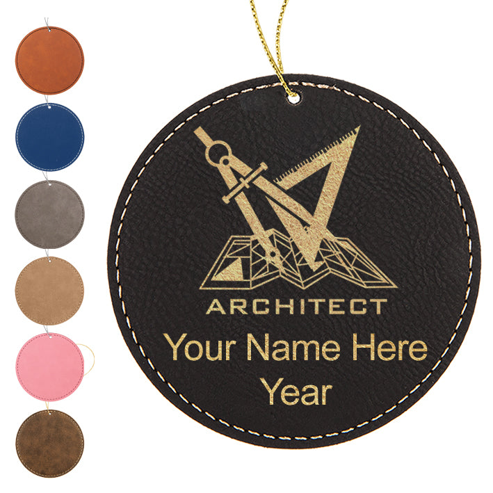 LaserGram Christmas Ornament, Architect Symbol, Personalized Engraving Included (Faux Leather, Round Shape)