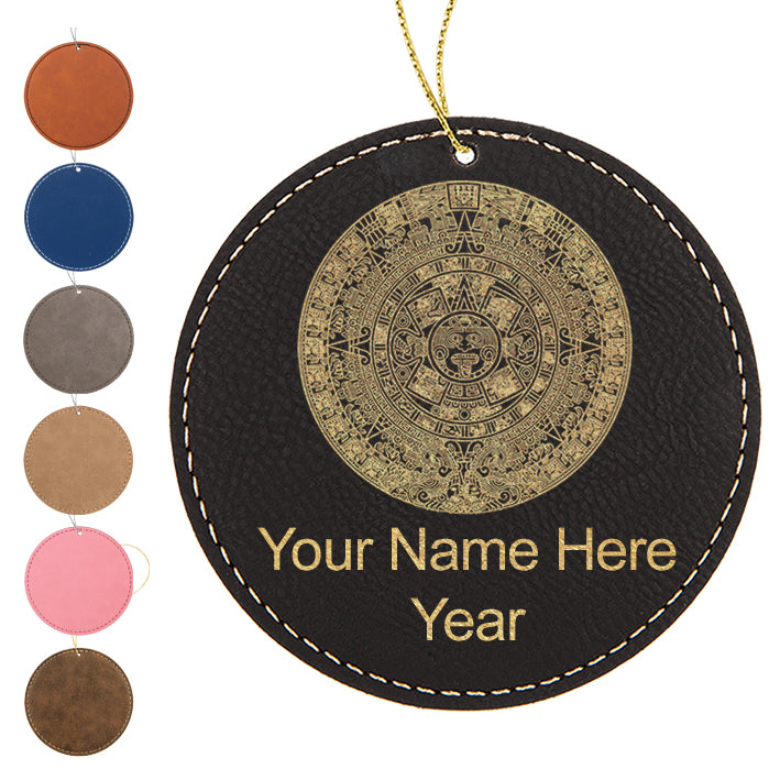 LaserGram Christmas Ornament, Aztec Calendar, Personalized Engraving Included (Faux Leather, Round Shape)