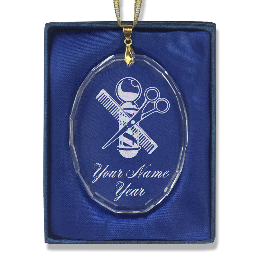 LaserGram Christmas Ornament, Barber Shop Pole, Personalized Engraving Included (Oval Shape)