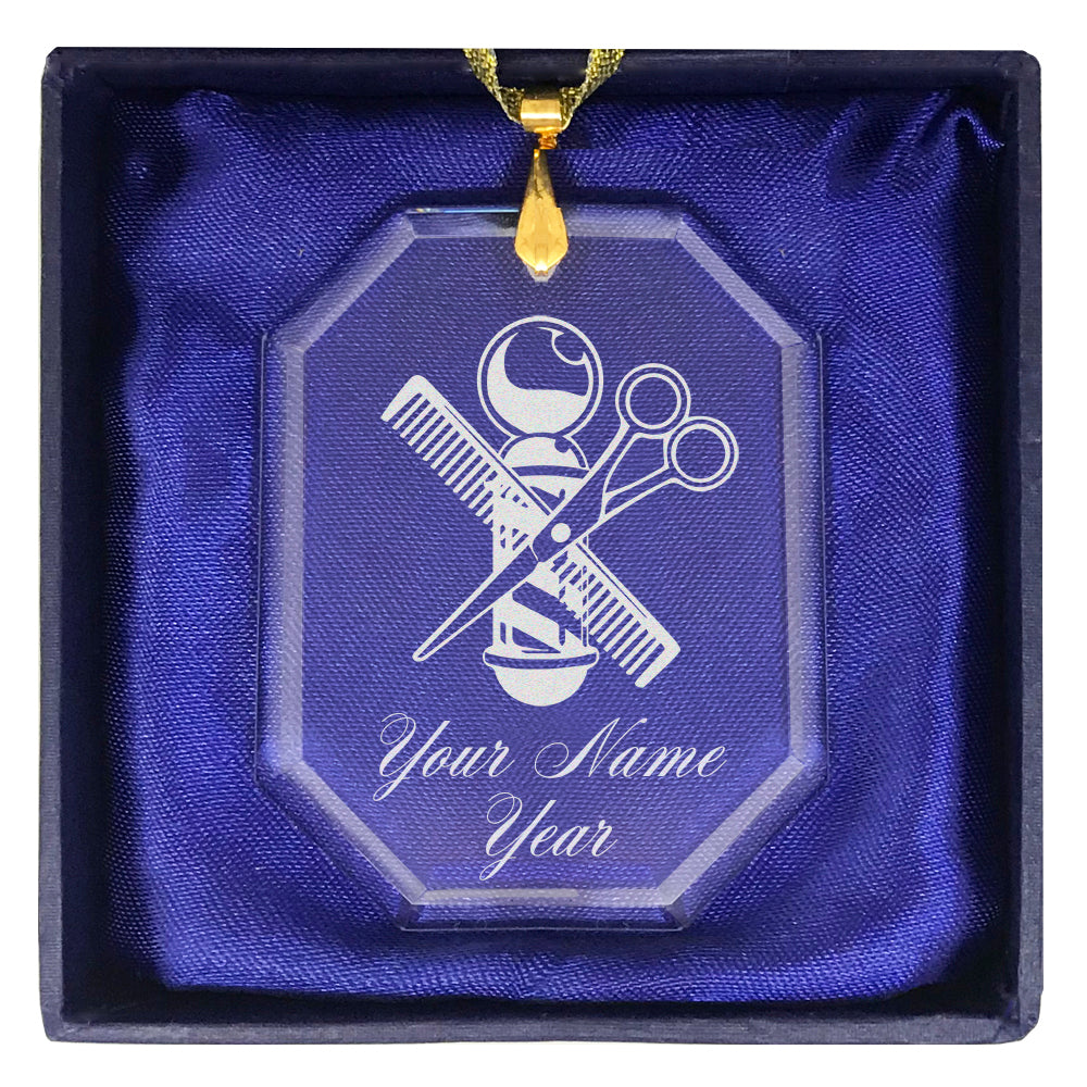 LaserGram Christmas Ornament, Barber Shop Pole, Personalized Engraving Included (Rectangle Shape)