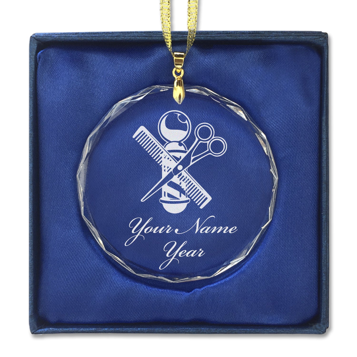 LaserGram Christmas Ornament, Barber Shop Pole, Personalized Engraving Included (Round Shape)