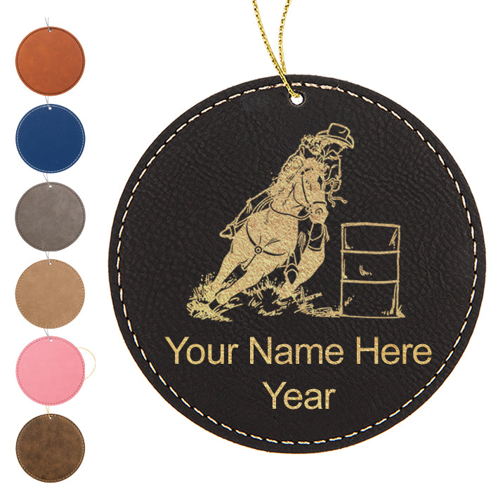 LaserGram Christmas Ornament, Barrel Racer, Personalized Engraving Included (Faux Leather, Round Shape)