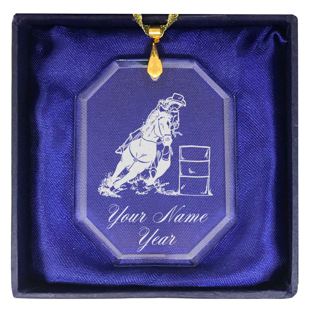 LaserGram Christmas Ornament, Barrel Racer, Personalized Engraving Included (Rectangle Shape)