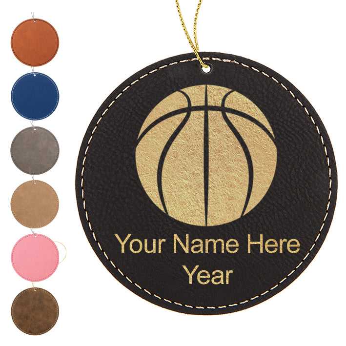 LaserGram Christmas Ornament, Basketball Ball, Personalized Engraving Included (Faux Leather, Round Shape)