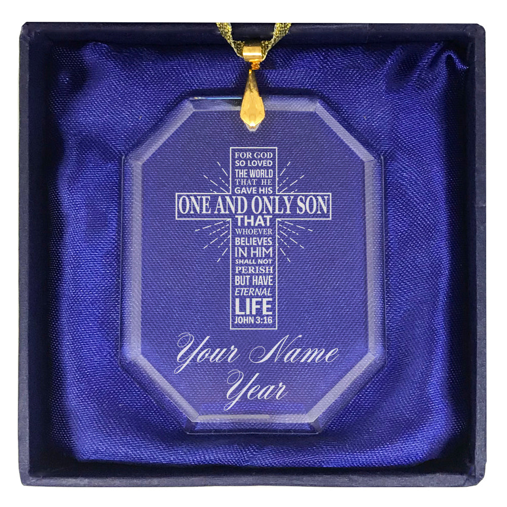 LaserGram Christmas Ornament, Bible Verse John 3-16, Personalized Engraving Included (Rectangle Shape)