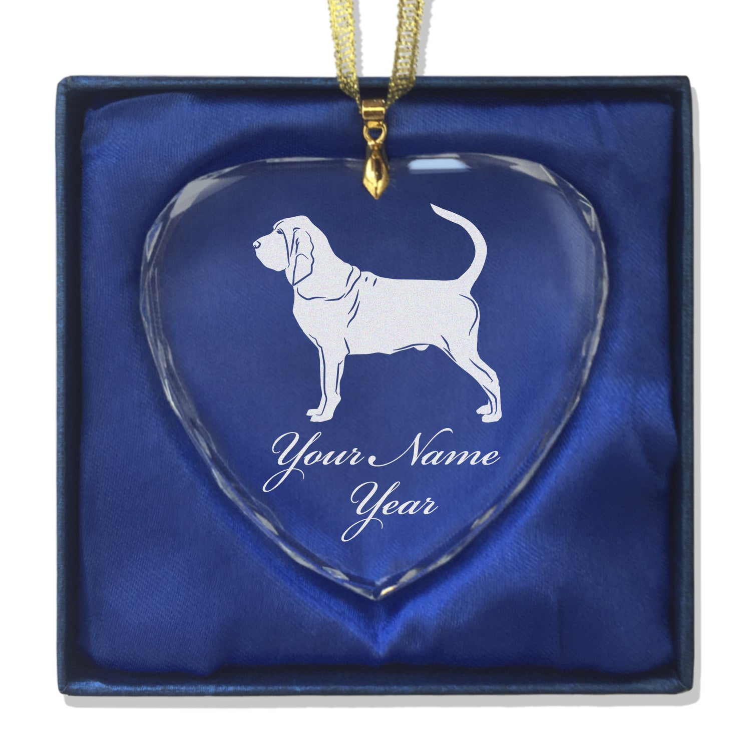 LaserGram Christmas Ornament, Bloodhound Dog, Personalized Engraving Included (Heart Shape)