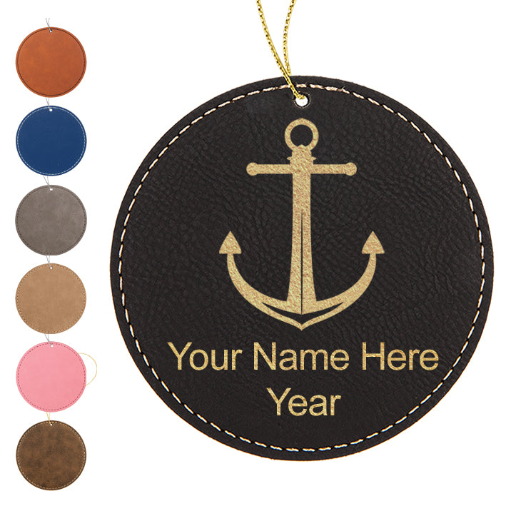 LaserGram Christmas Ornament, Boat Anchor, Personalized Engraving Included (Faux Leather, Round Shape)