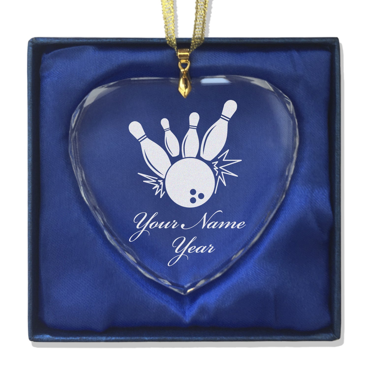 LaserGram Christmas Ornament, Bowling Ball and Pins, Personalized Engraving Included (Heart Shape)