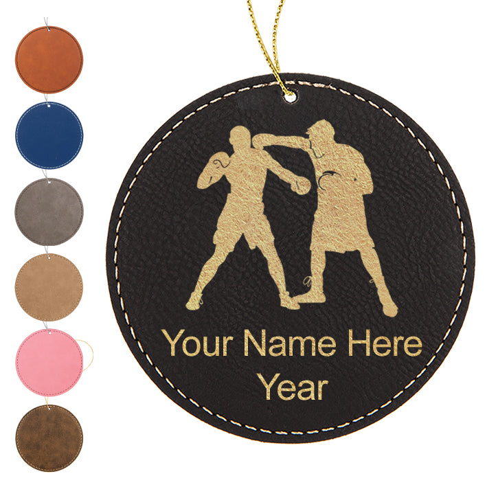 LaserGram Christmas Ornament, Boxers Boxing, Personalized Engraving Included (Faux Leather, Round Shape)