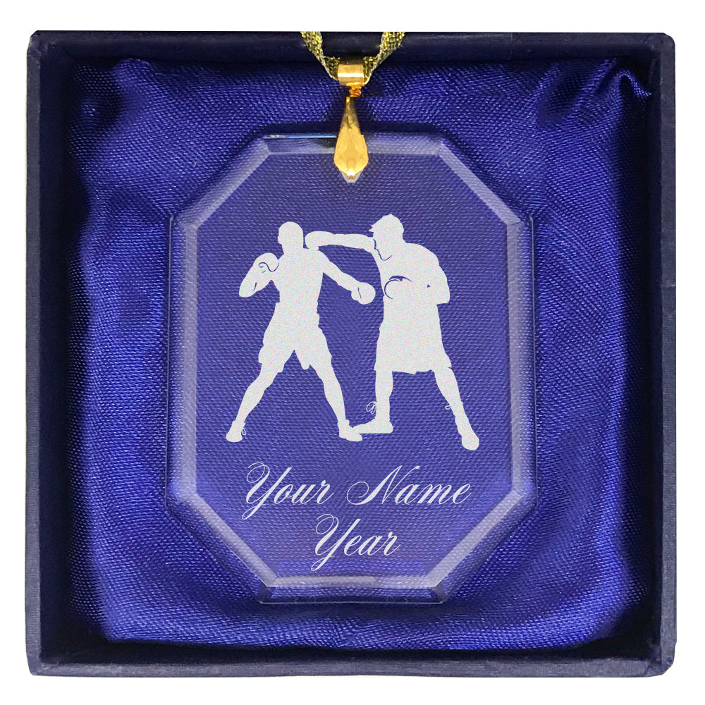 LaserGram Christmas Ornament, Boxers Boxing, Personalized Engraving Included (Rectangle Shape)