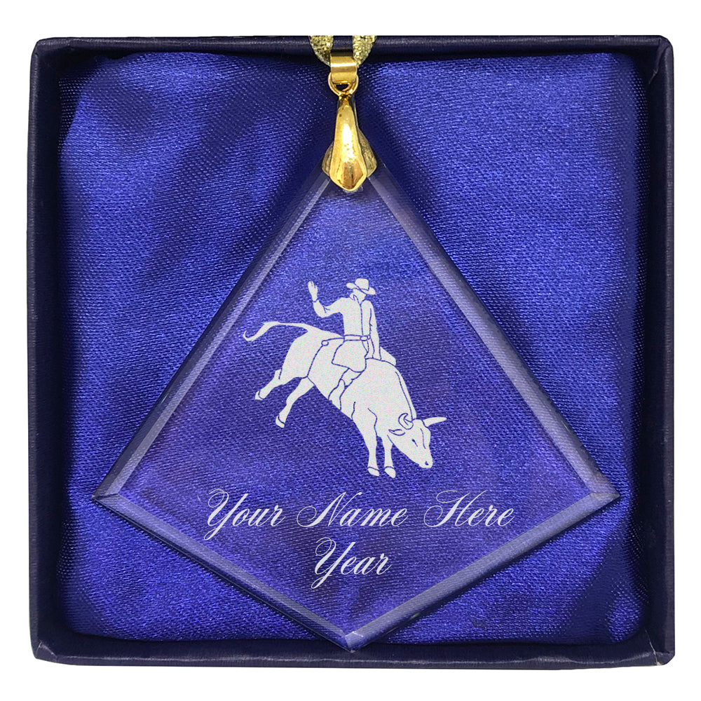 LaserGram Christmas Ornament, Bull Rider Cowboy, Personalized Engraving Included (Diamond Shape)