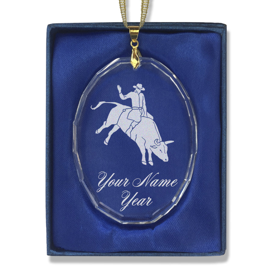 LaserGram Christmas Ornament, Bull Rider Cowboy, Personalized Engraving Included (Oval Shape)