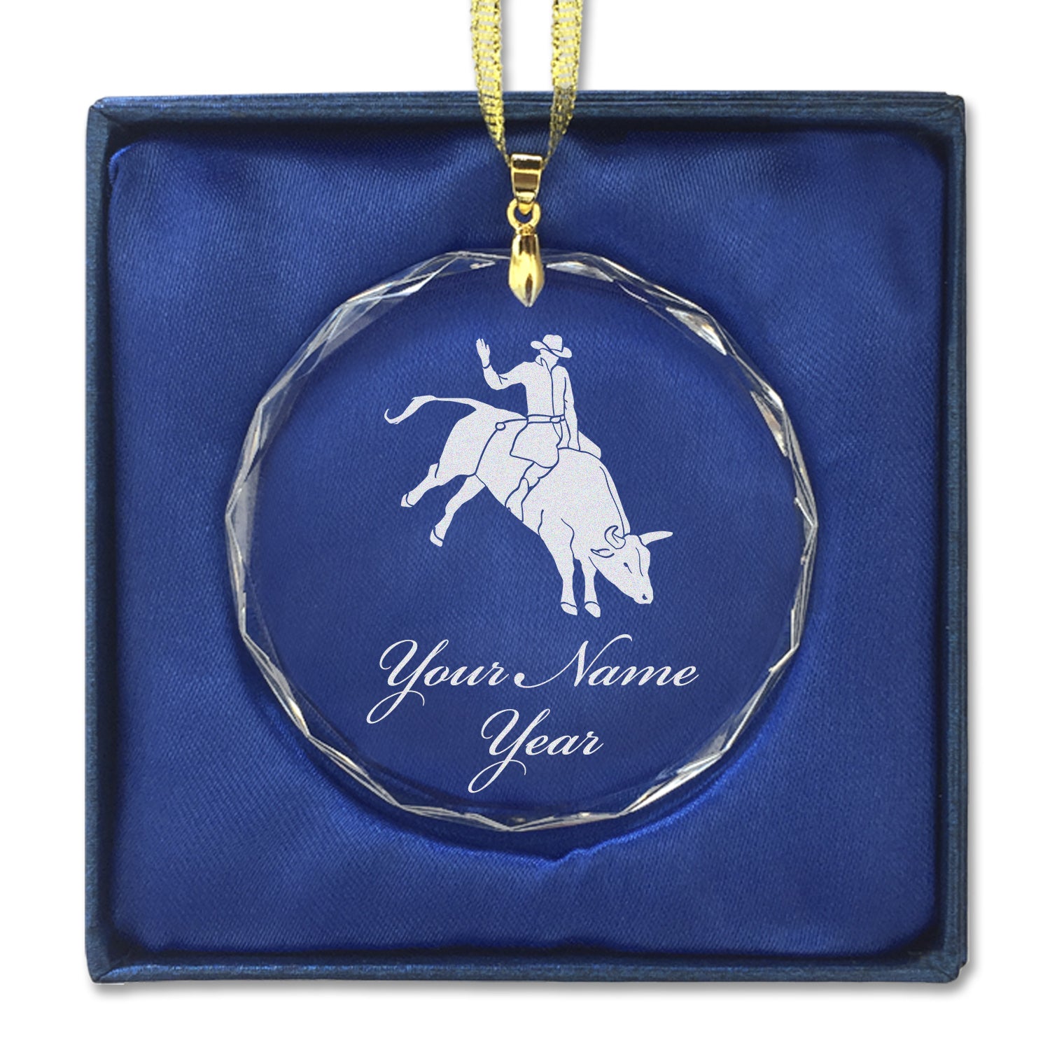 LaserGram Christmas Ornament, Bull Rider Cowboy, Personalized Engraving Included (Round Shape)