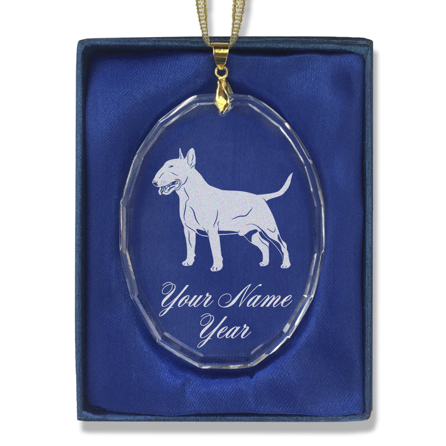 LaserGram Christmas Ornament, Bull Terrier Dog, Personalized Engraving Included (Oval Shape)