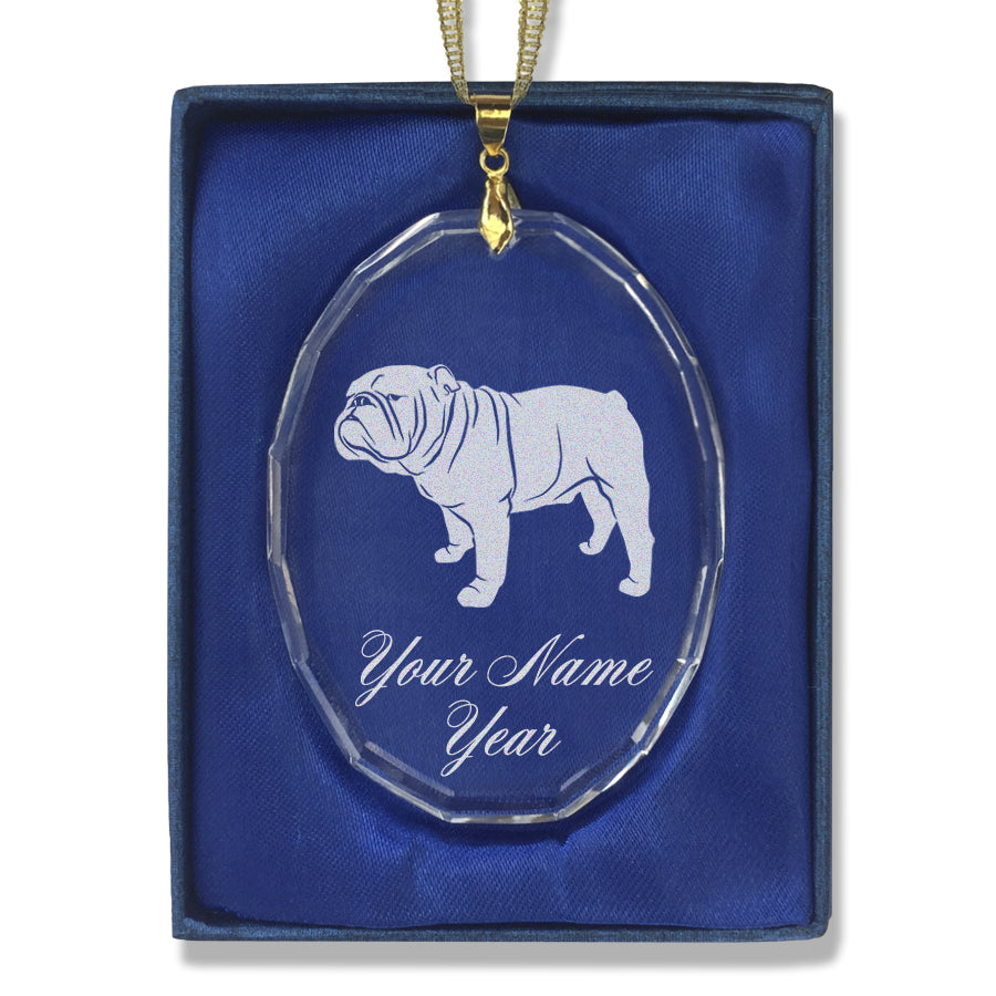 LaserGram Christmas Ornament, Bulldog Dog, Personalized Engraving Included (Oval Shape)