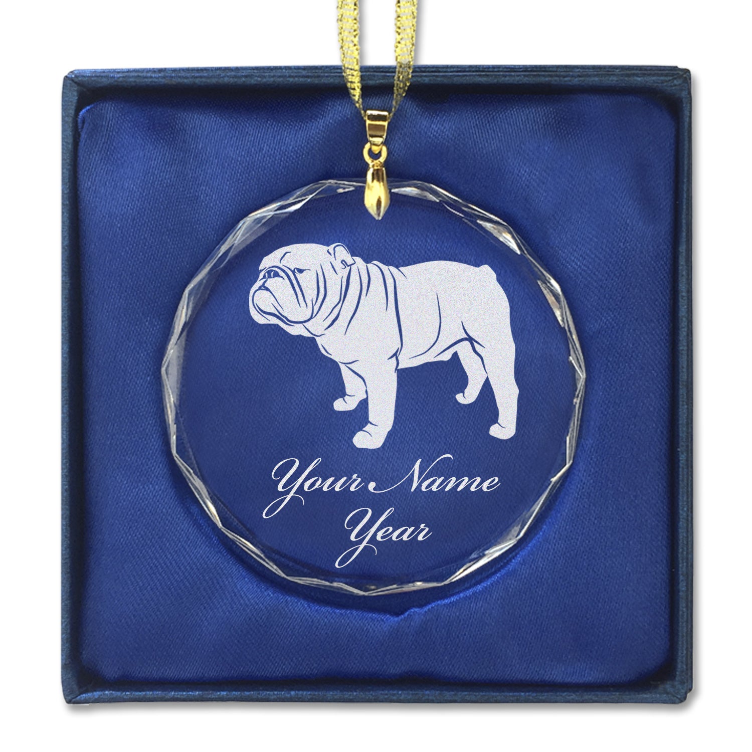 LaserGram Christmas Ornament, Bulldog Dog, Personalized Engraving Included (Round Shape)